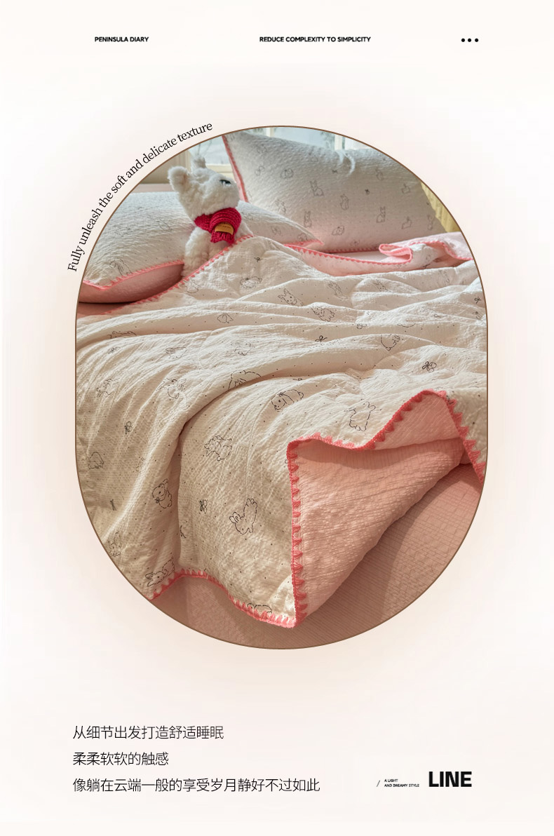 慕澄家纺 2024新款时尚印花泡泡棉花边夏被夏凉被空调被 夏被-甜小兔,夏被-甜小兔