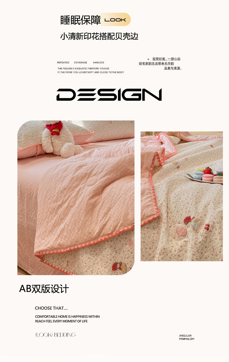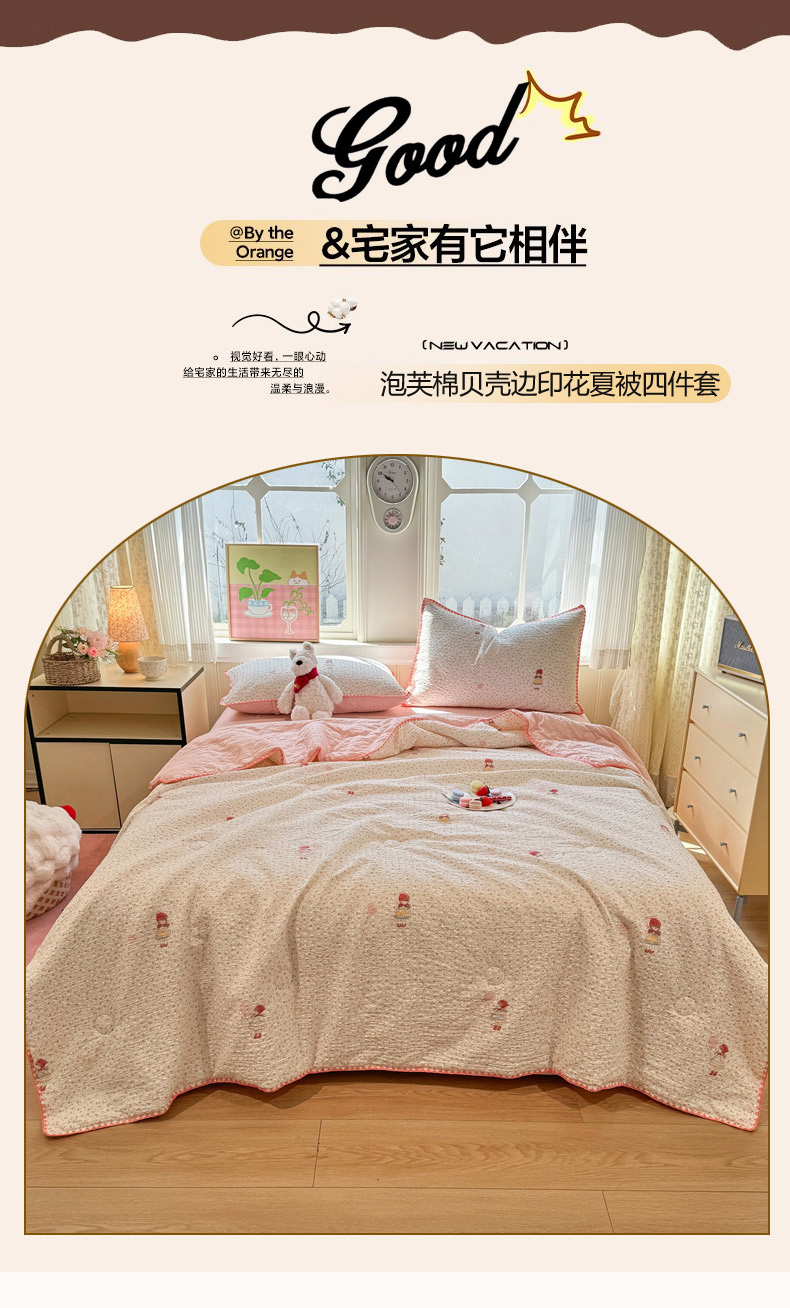 (总)慕澄家纺 2026新款泡芙棉贝壳边印花夏被四件套,夏被-粉边兔小乖,夏被-红马星野,夏被-焦糖海盐,夏被-栗栗南瓜派,夏被-奶橘小甜梦,夏被-奶蓝部落,夏被-奶雾玫瑰,夏被-青条熊猫梦,夏被-少女花田,夏被-甜莓小熊园,夏被-童话镇,夏被-午夜花园,夏被-星落小红帽,夏被-椰棕猫软糖