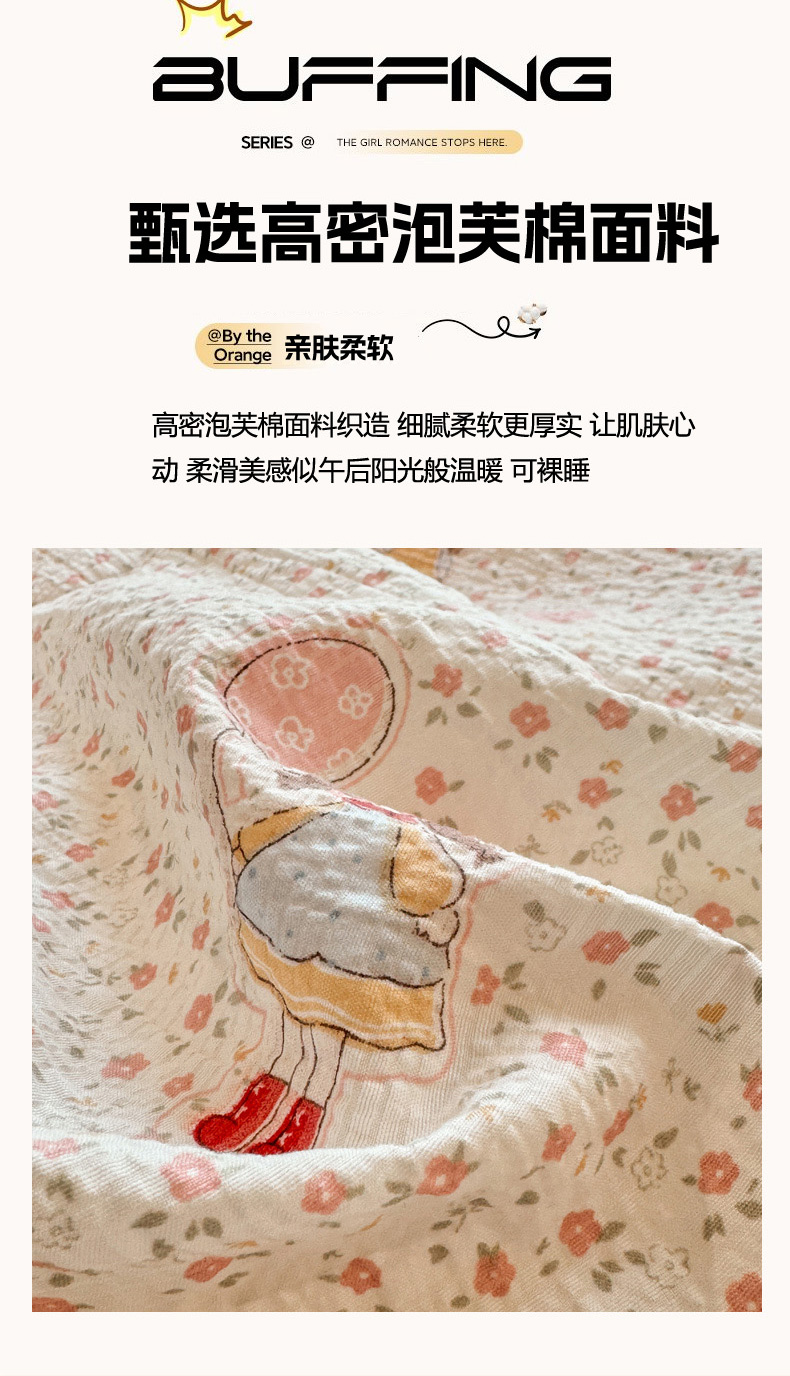 慕澄家纺 2026新款泡芙棉贝壳边印花夏被四件套 夏被-少女花田