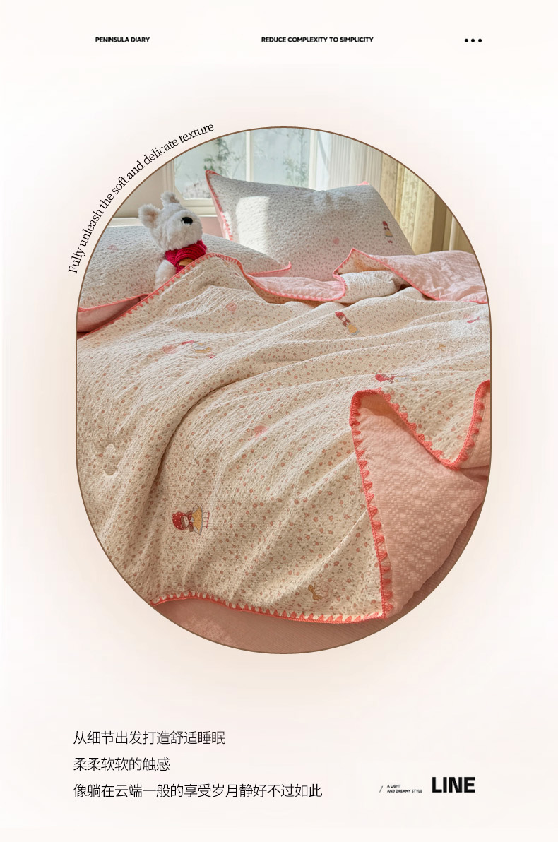 慕澄家纺 2024新款时尚印花泡泡棉花边夏被夏凉被空调被 夏被-如愿,夏被-如愿