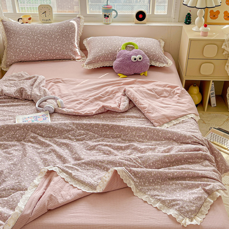 (总)梦纤绒 2026新款云感皱皱纱花边款夏被夏凉被空调被四件套