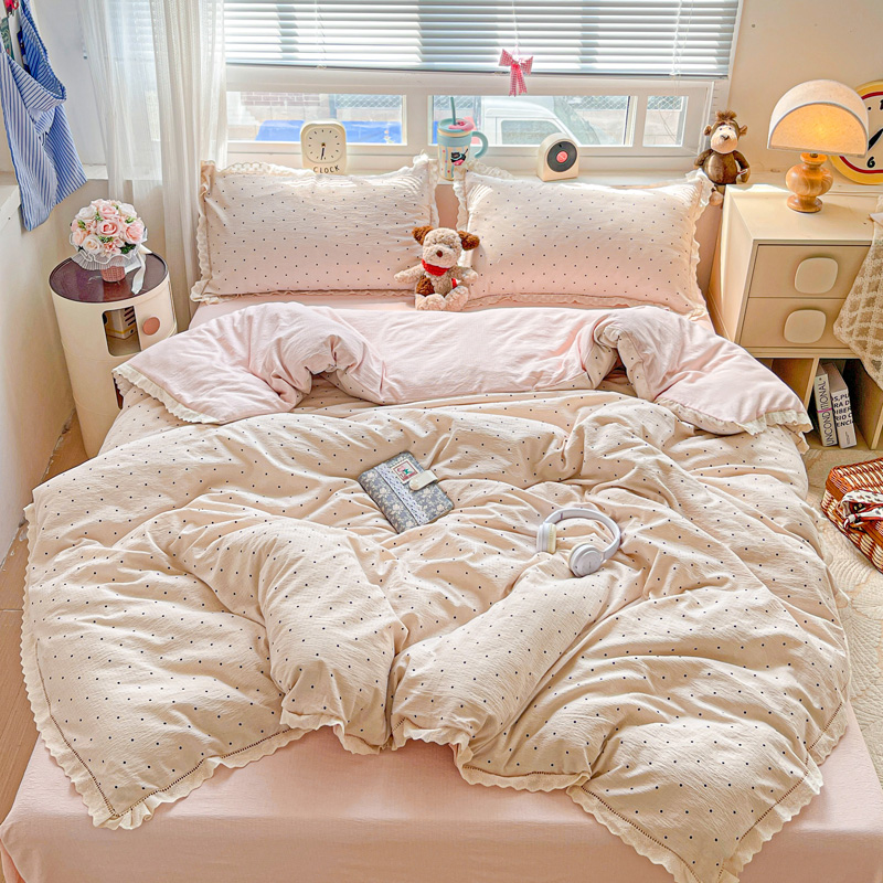(总)梦纤绒 2025新款云感木棉皱皱双层纱全棉花边四件套,白茶-绿,百福蓝,薄荷微凉,初恋,春风里,春晓,豆蔻,蝴蝶梦,花园兔,可颂,蜡笔画,莱茵河畔,兰黛,山野栀子,素颜,太妃糖,桃花诺,田园拾趣-黄,小黑兔,心动,遇见,芝士奶酪,紫爱心,紫苏,组合图(仅展示)