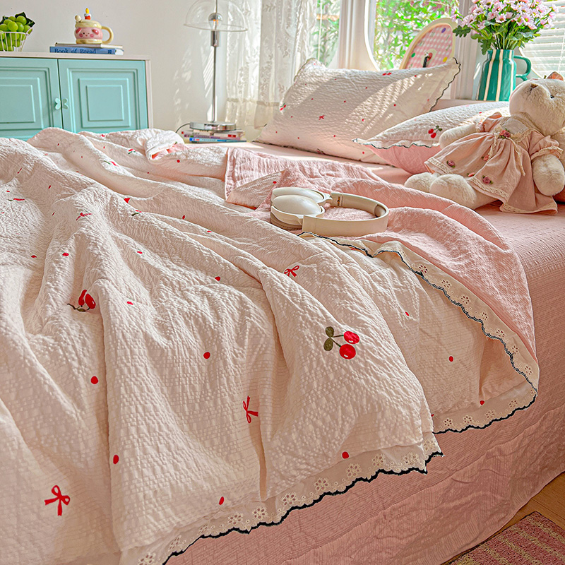 (总)一比一家纺 2026新款法式花边泡芙纱夏被四件套,春日小花,春日小兔,蛋糕熊,道格先生,费尔岛,红波点,红樱桃,蝴蝶谷,花枝兔,欢乐时光,浪漫满屋,马到成功,萌趣熊,梦宝贝 - 红,梦宝贝 - 黄,奶霜啵啵,南瓜象,青禾,甜心KT,晚安星人,小矮人,小红马,幸运汪,熊贝贝,悦己,紫花兔兔,青色樱桃,樱桃波点,甜樱喵,梦幻小马,甜心咖,柔诗意,青梅酱,黛蝶,云朵泡芙,萌趣熊咖,软萌南瓜