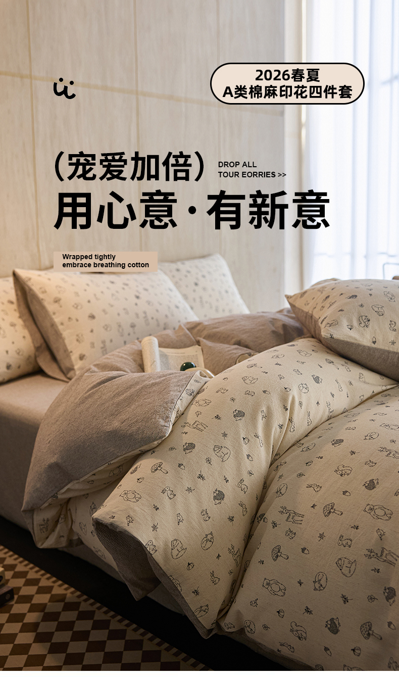 当前位置: 91家纺网 > 商品网购 > 床品套件 > 四件套 > 棉麻四件套 > 亿梵家居 2026春夏新款A类棉麻印花四件套 奇妙森林