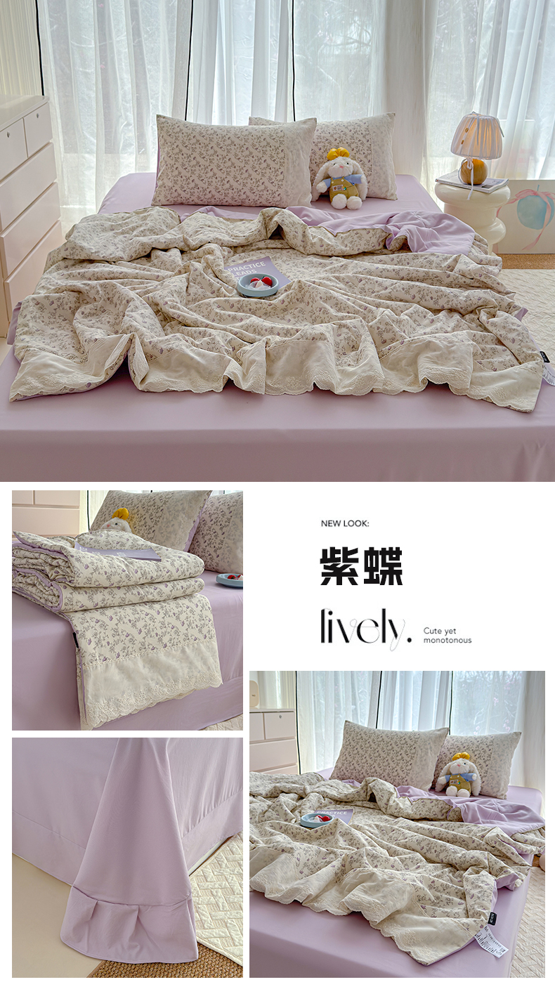 (总)竹合家纺 2026春夏新款古法水洗仿棉云感棉夏被四件套全棉花边印花夏凉被空调被,棠梨,兔朵朵,蓝花楹,花畔,甜梦小狗,小马驹,花酿,紫蝶,素羽,桃笺,安之若素,瑾夏,组合图
