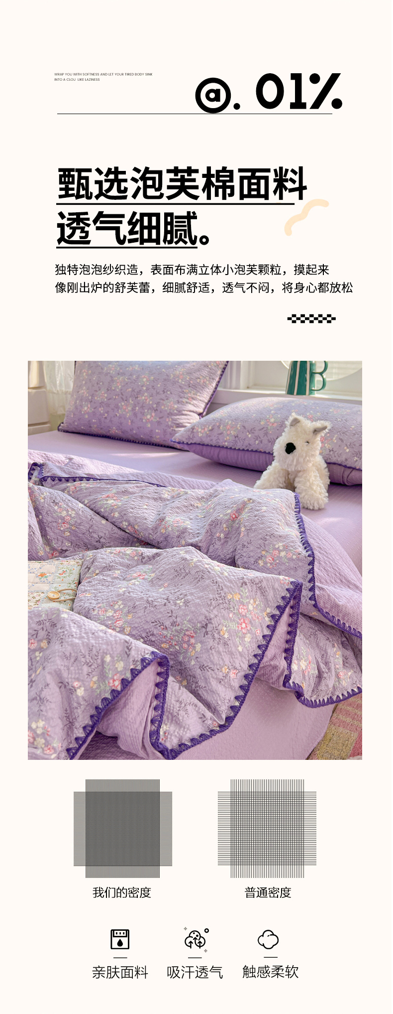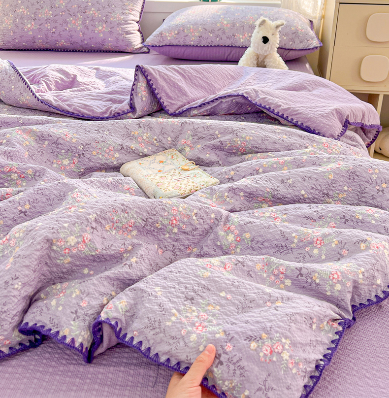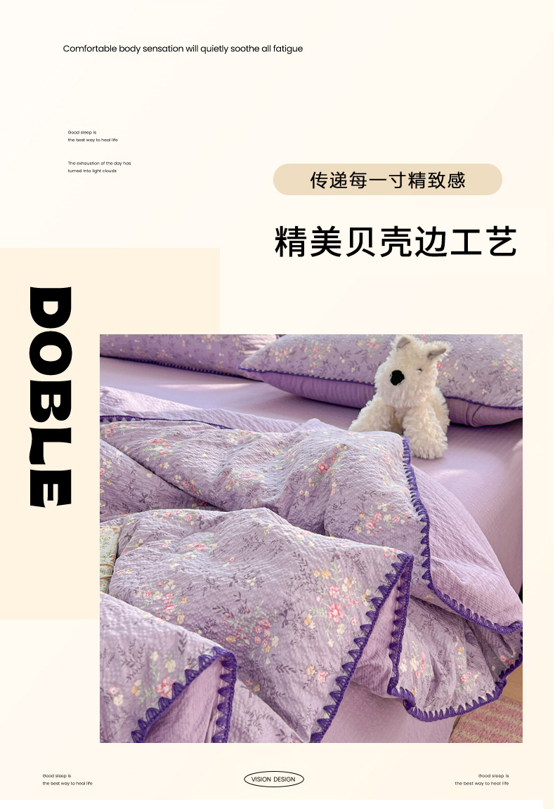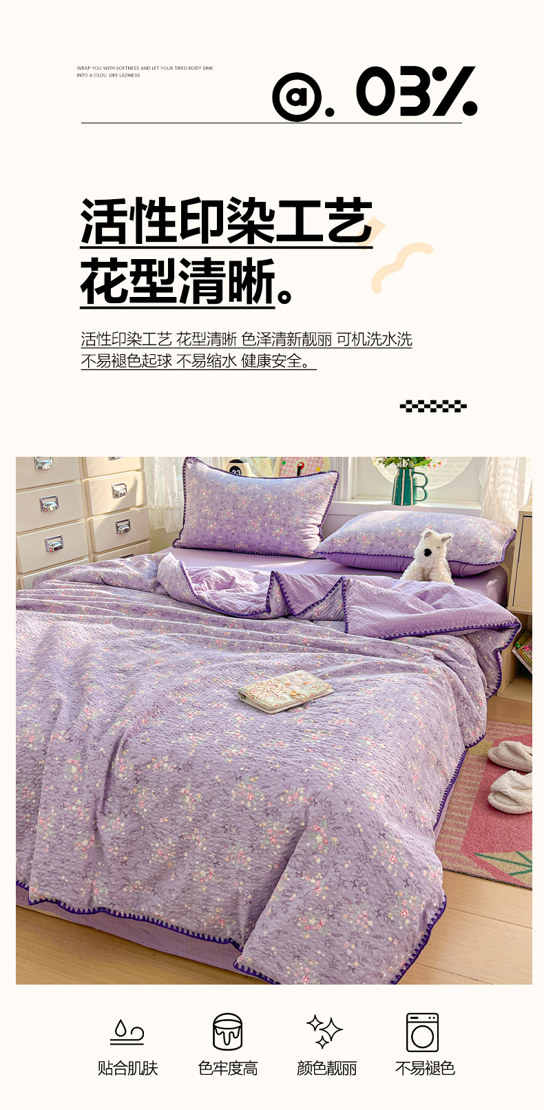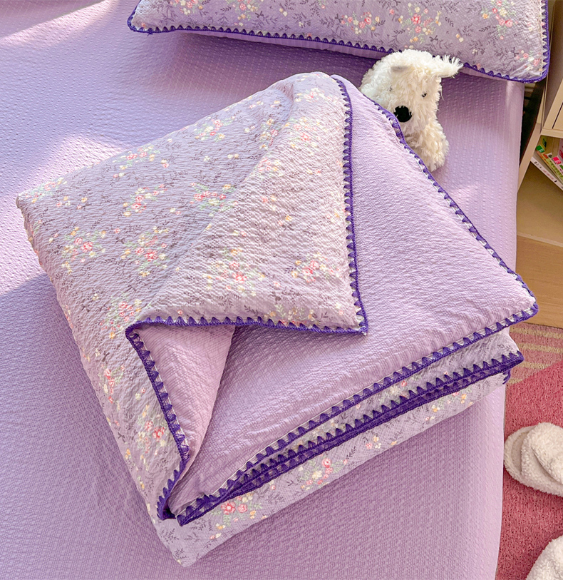 商品名称:恒尚居 2026新款A类泡芙纱贝壳边夏被夏凉被四件套空调被三角针绣边 【花间紫】贝壳边