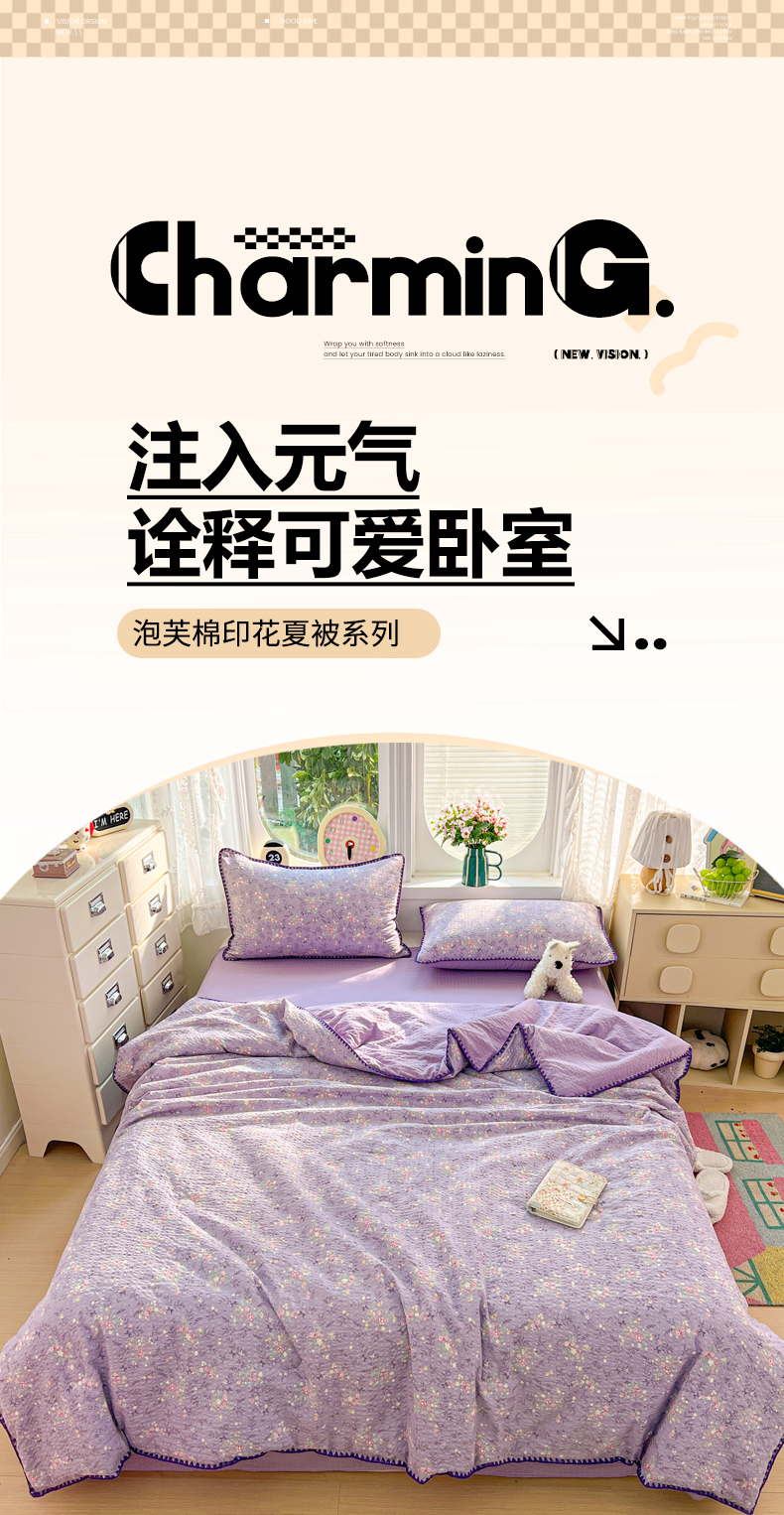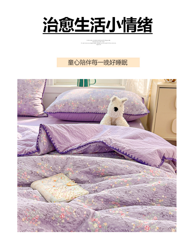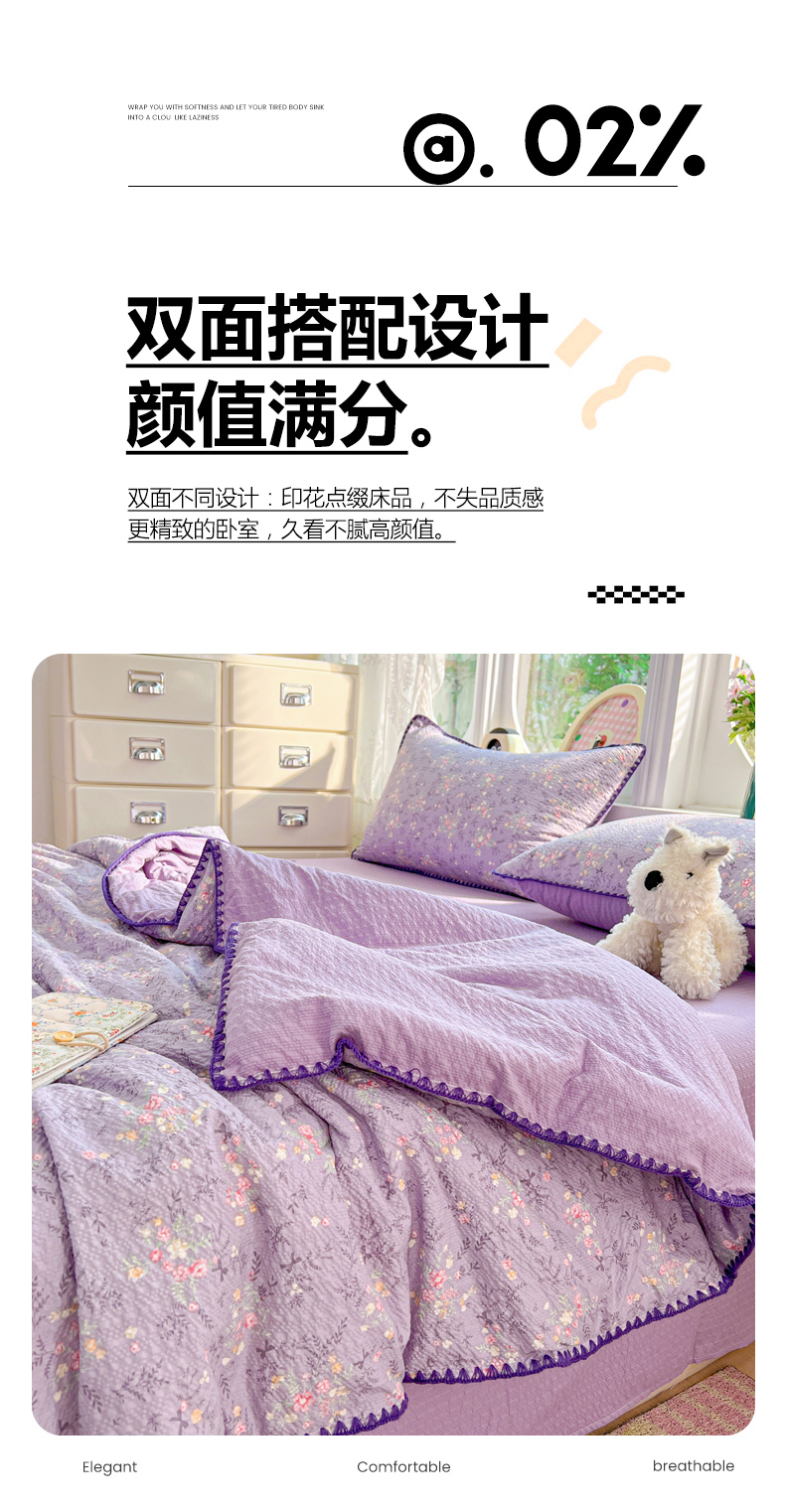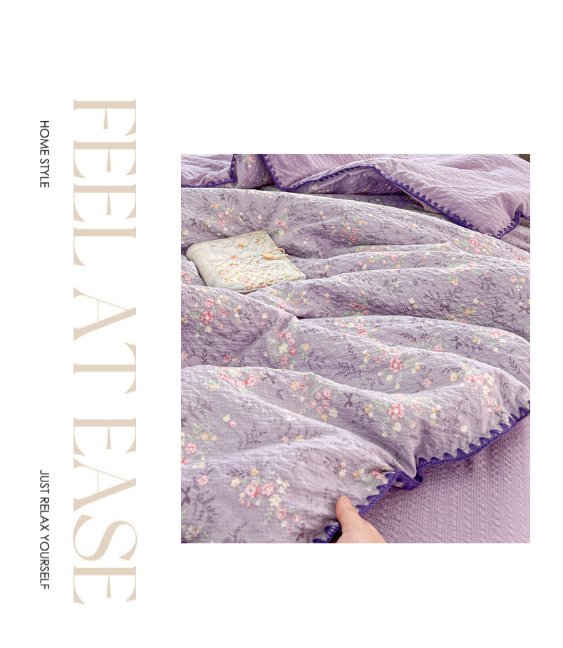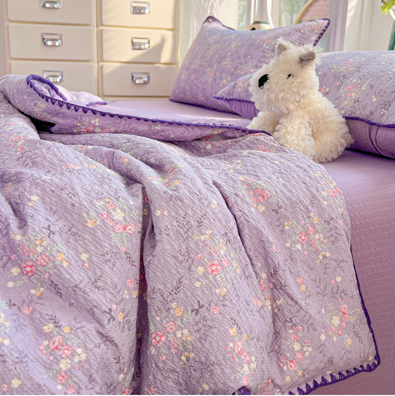 商品名称:恒尚居 2026新款A类泡芙纱贝壳边夏被夏凉被四件套空调被三角针绣边 【花间紫】贝壳边