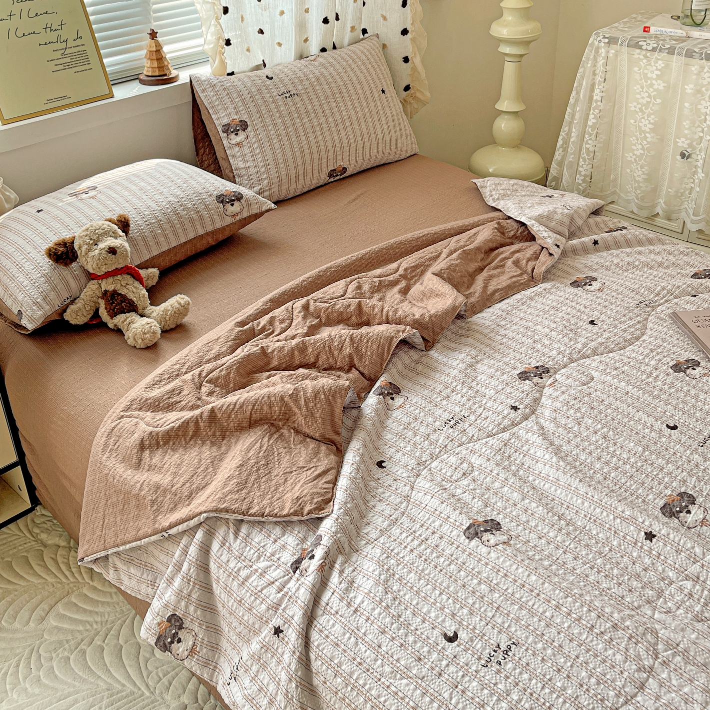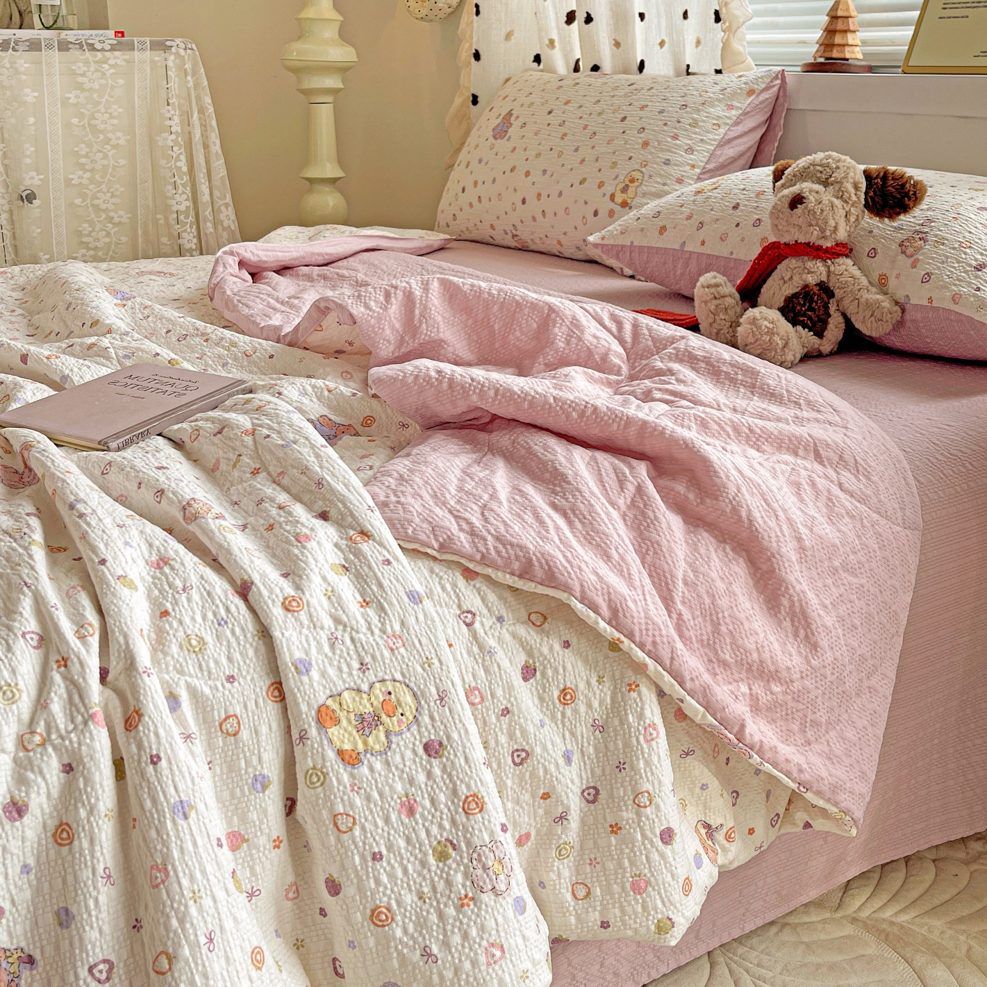 (总)仟网汇 2026新款泡芙纱简单款夏被四件套,安妮,草莓恋语,春日小兔,花藤小兔,咖啡狗,浪漫彩蝶,玫瑰之恋,素锦,小黄鸭,心愿,星梦乐园,星星狗,熊博士,摇摇星人,樱桃波点,云朵泡芙,长耳兔,紫色花语,组合图仅供展示-不可下单