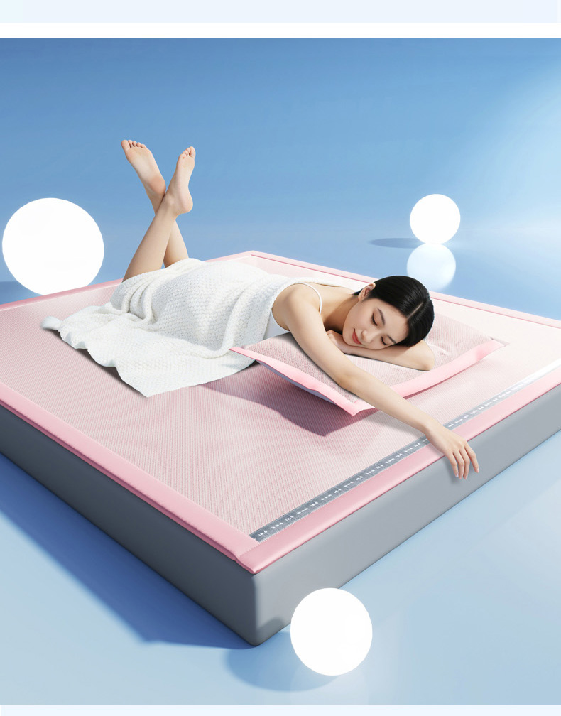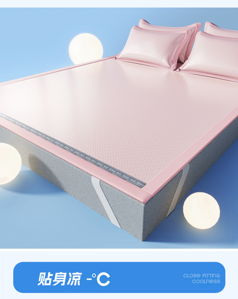 (总)印季家纺 2025新款纯色加密冰藤床裙凉席,粉色,灰色,咖啡,浅紫,水绿,天蓝