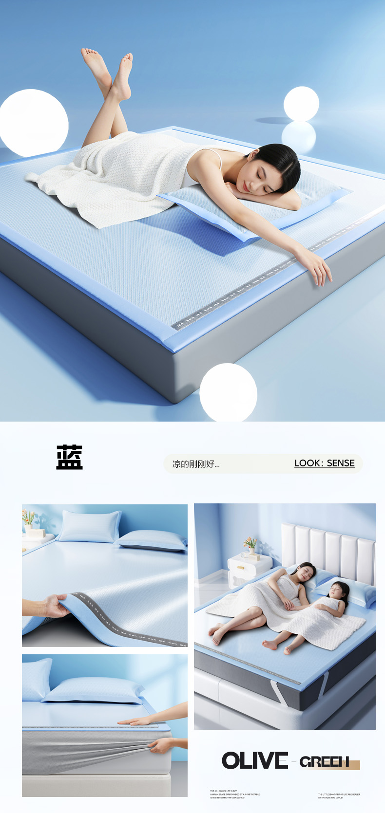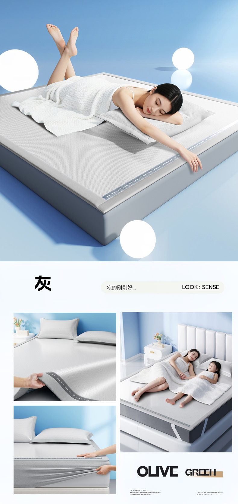 (总)印季家纺 2025新款轻奢简约凉感丝泡泡席-格调凉席,藏蓝,米黄,墨绿,浅粉,银灰