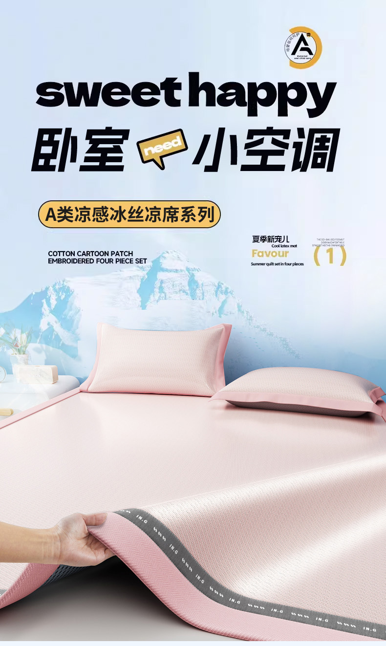 印季家纺 2026新款织带款纯色凉感丝软席 粉