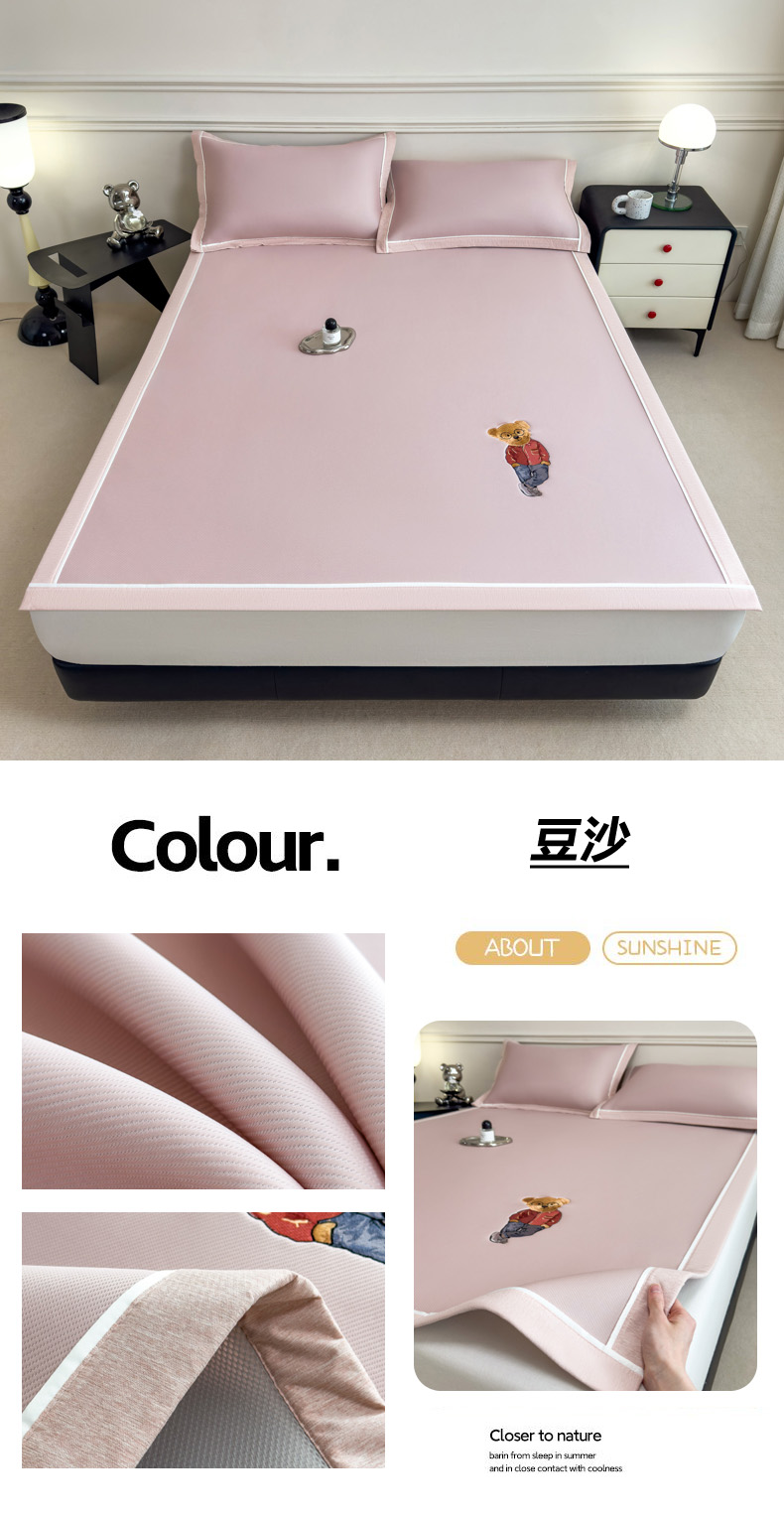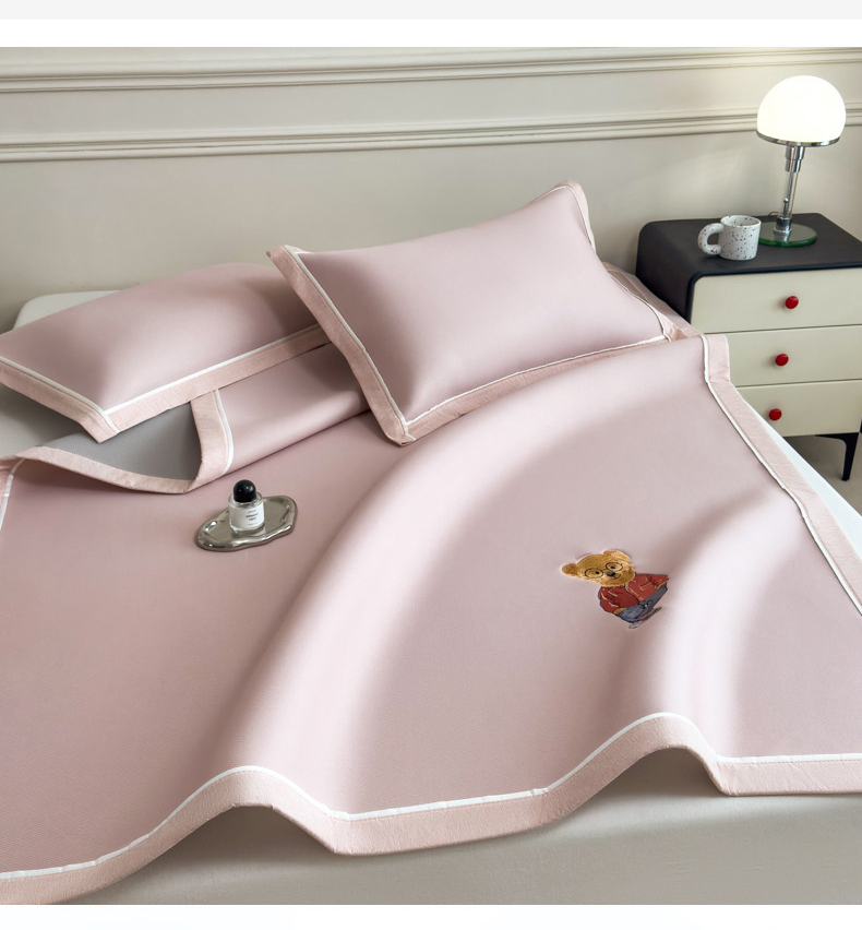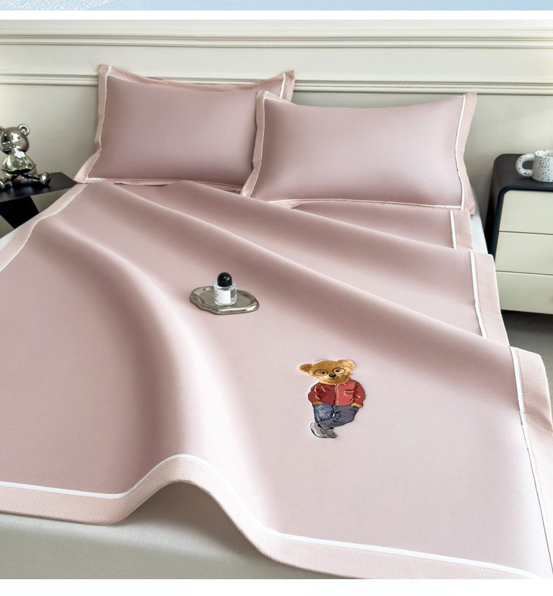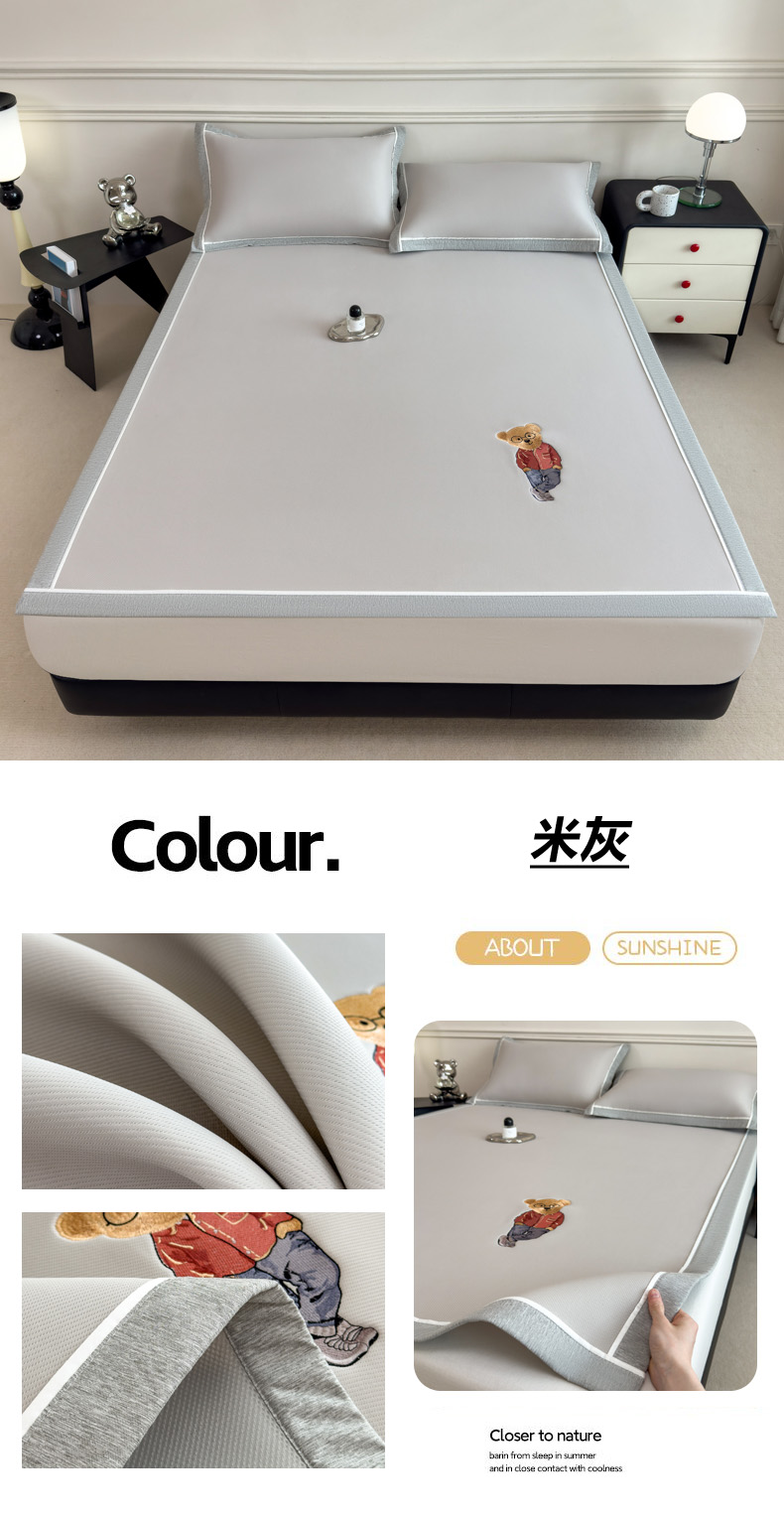 印季家纺 2026新款丝滑凉感绣花软席席子-洛克熊 豆沙