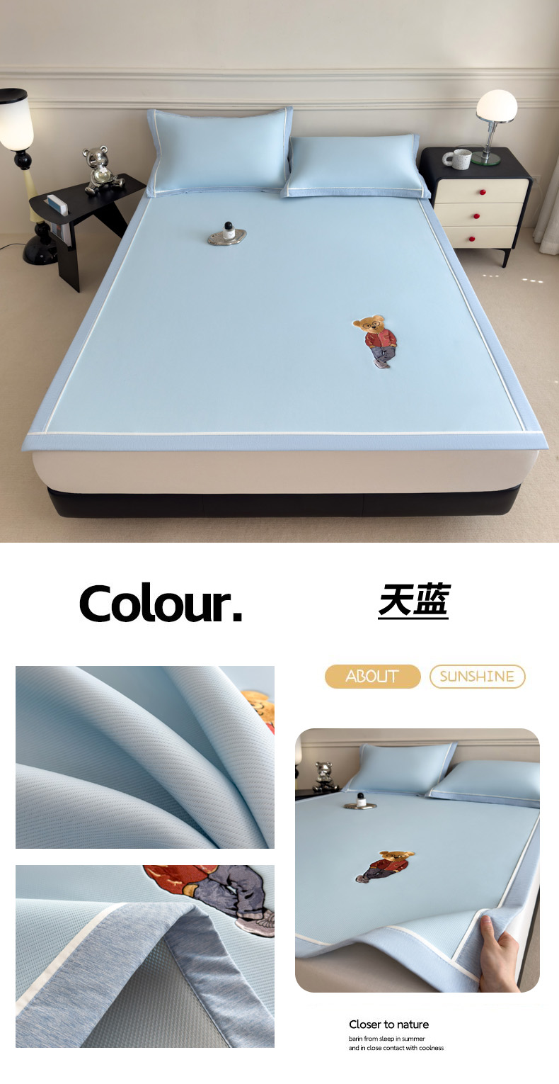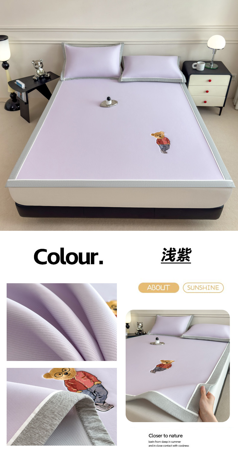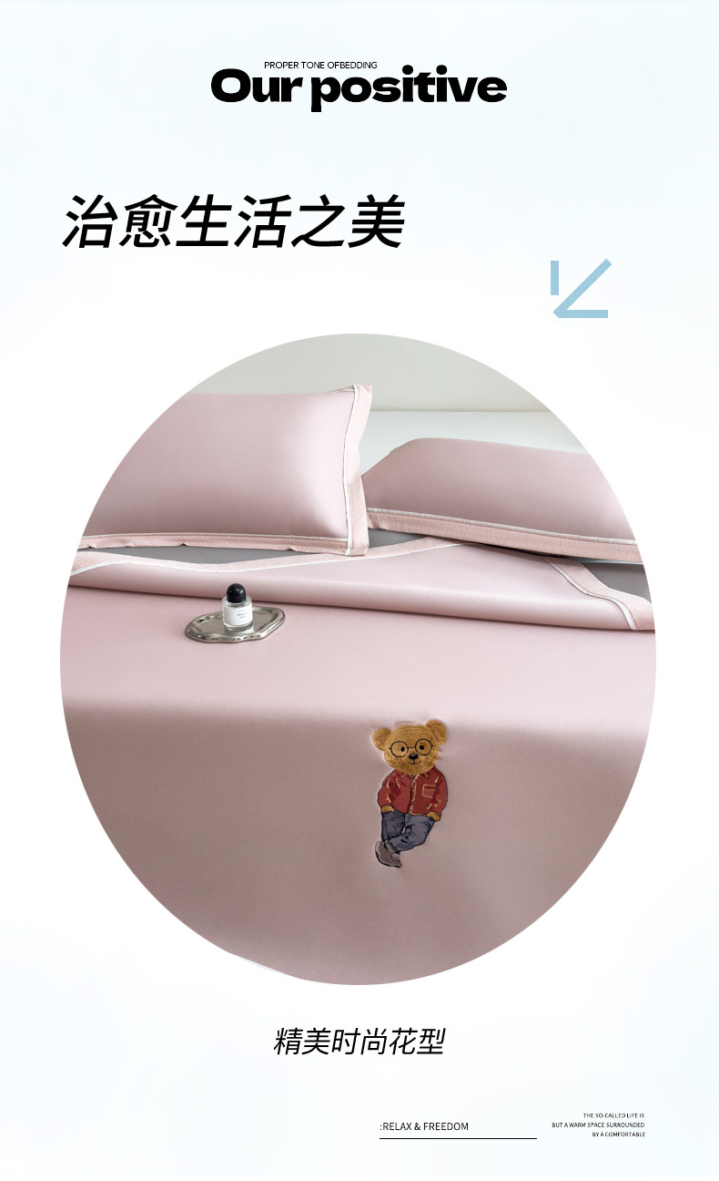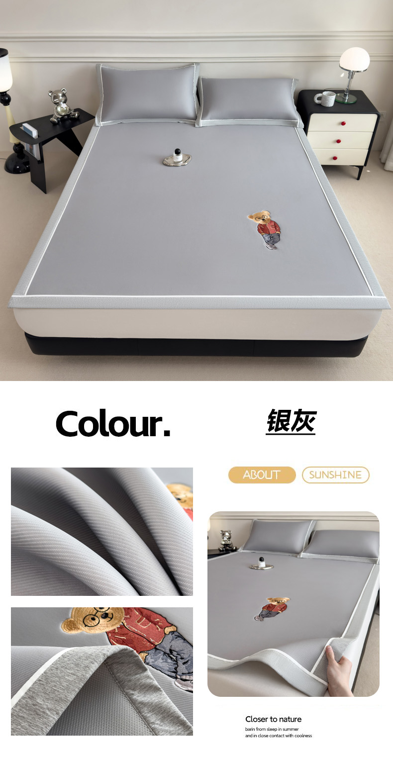 印季家纺 2026新款丝滑凉感绣花软席席子-洛克熊 豆沙