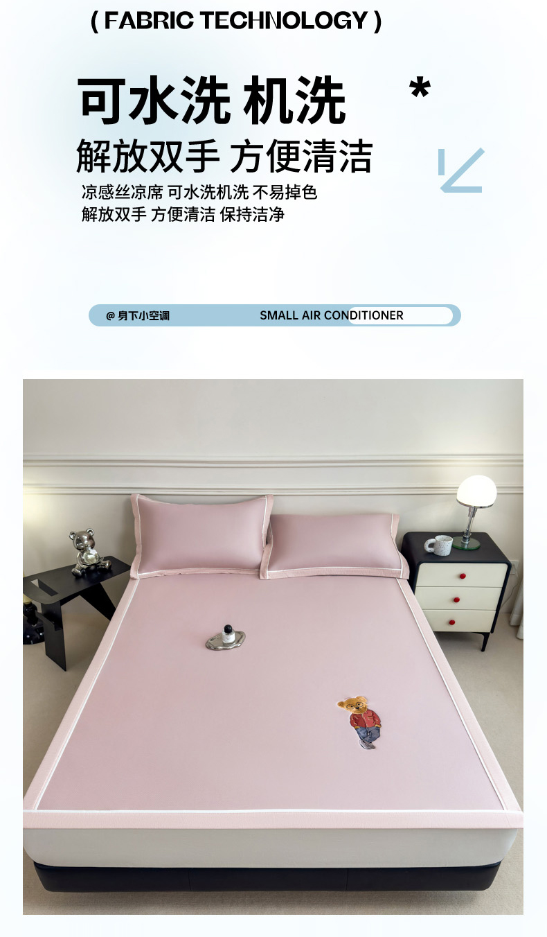 (总)印季家纺 2025新款轻奢简约凉感丝泡泡席-格调凉席,藏蓝,米黄,墨绿,浅粉,银灰