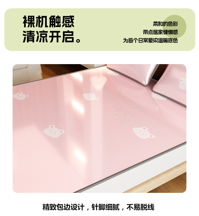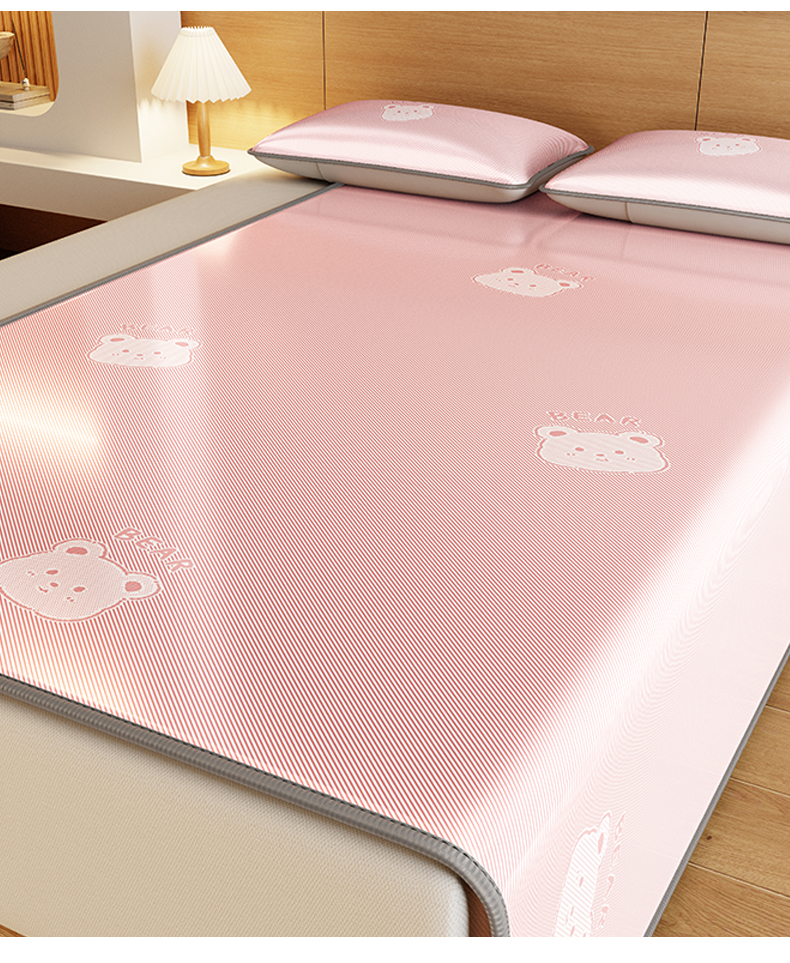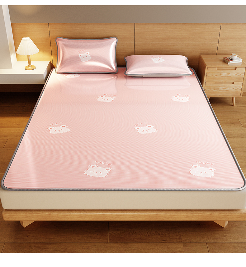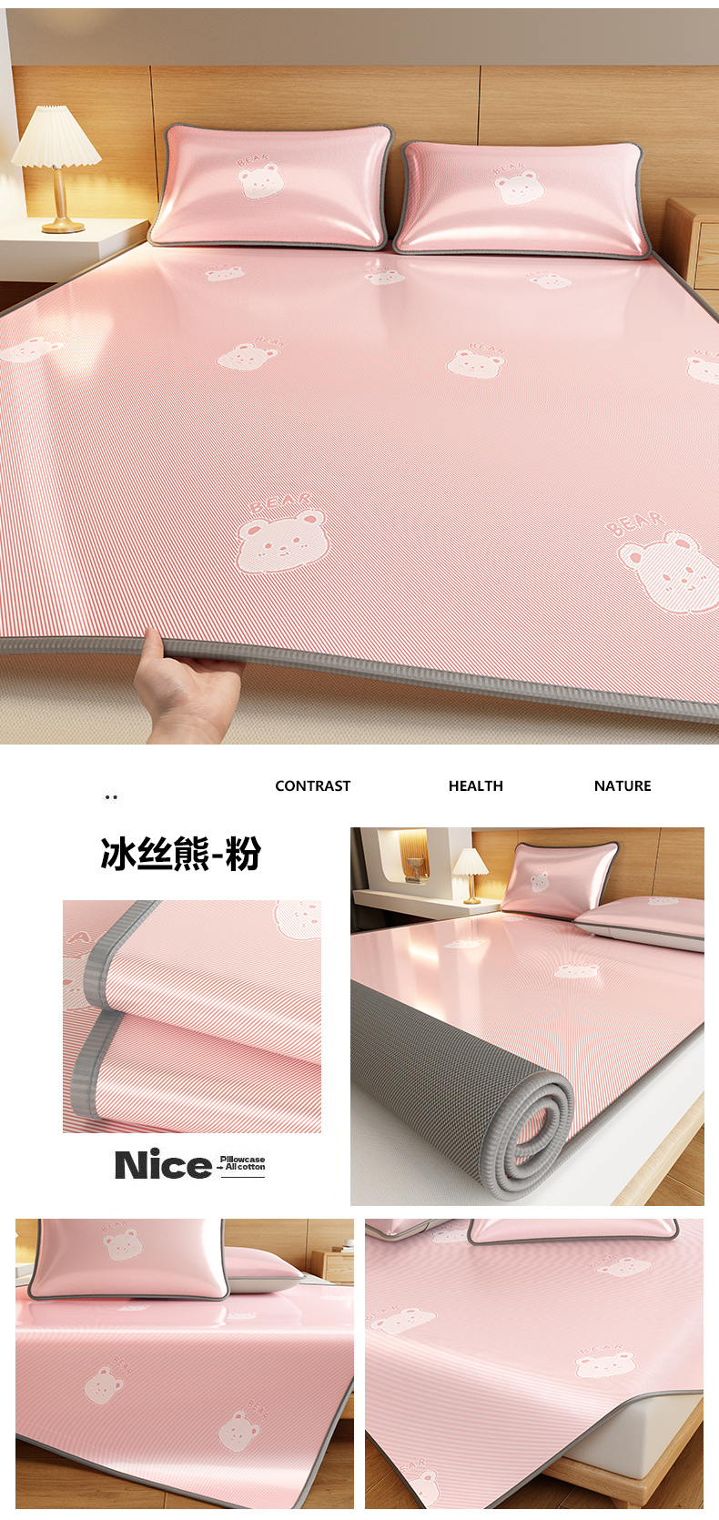 • 91家纺网 家纺一手货源 找家纺 源舍家纺 2026新款国标质检三明治复合糯叽叽冰丝软凉席成人床 冰丝熊-粉