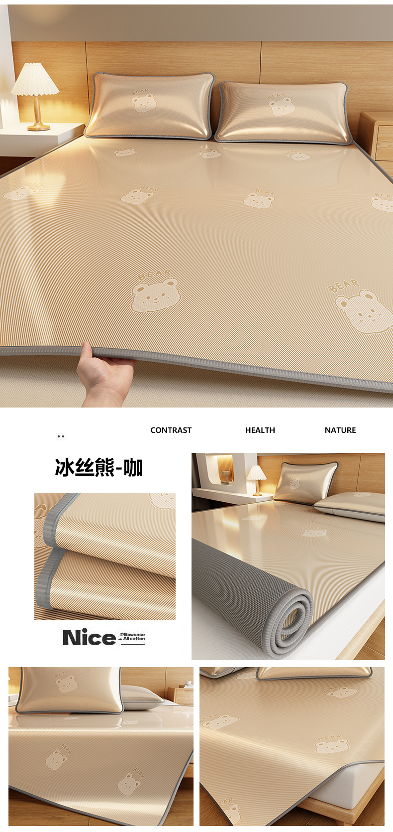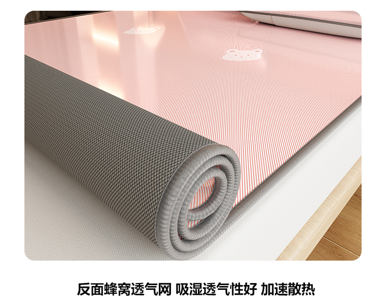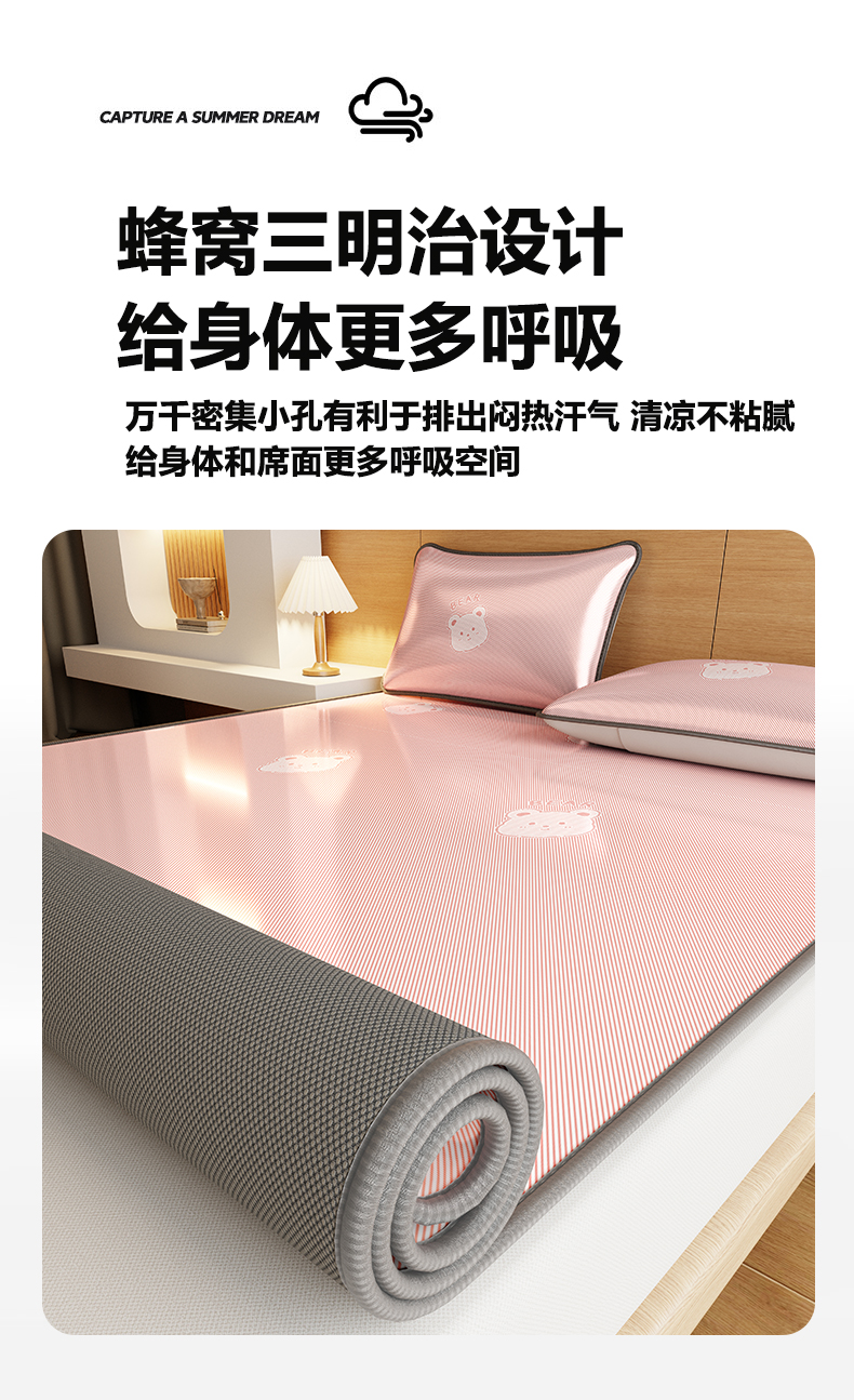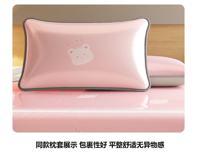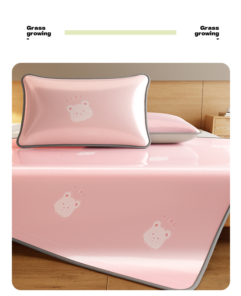 • 91家纺网 家纺一手货源 找家纺 源舍家纺 2026新款国标质检三明治复合糯叽叽冰丝软凉席成人床 冰丝熊-粉