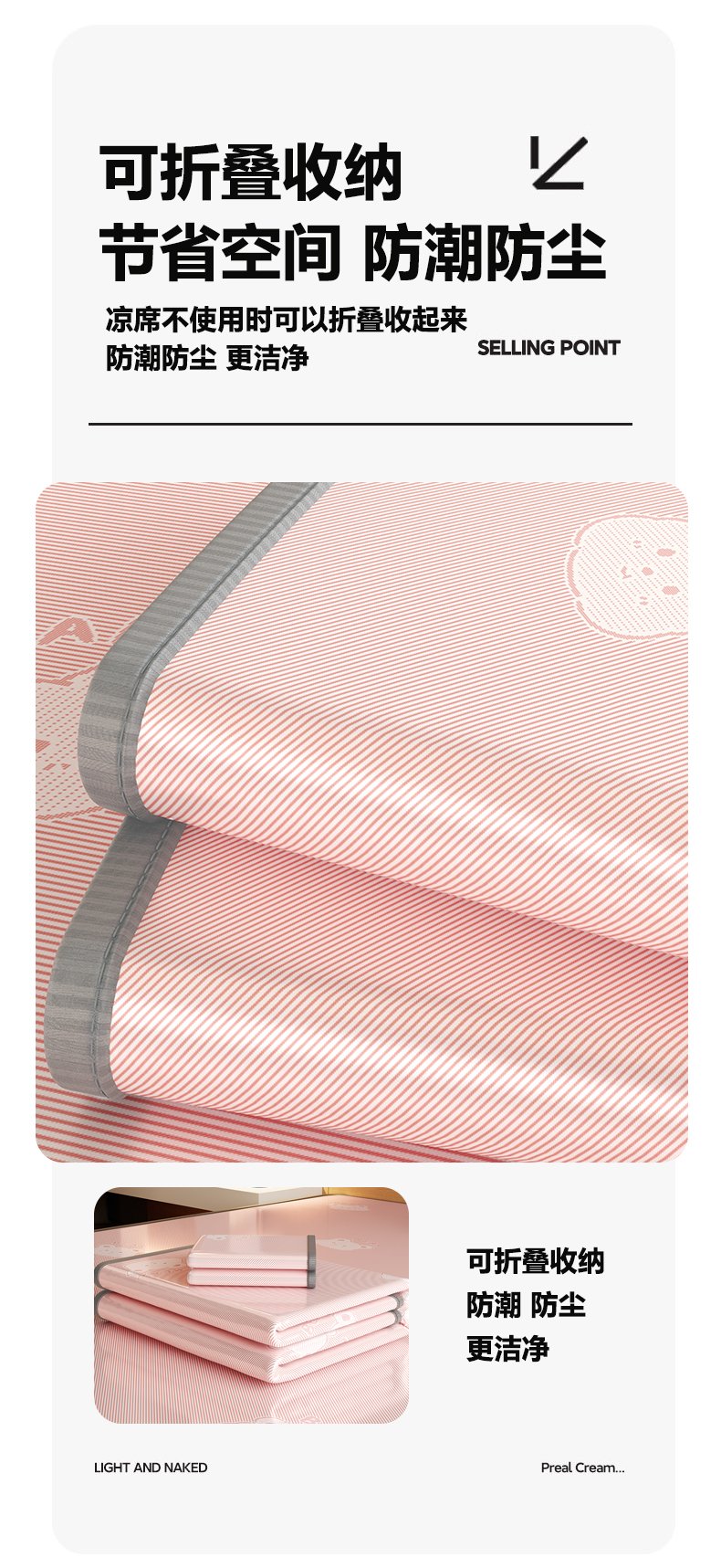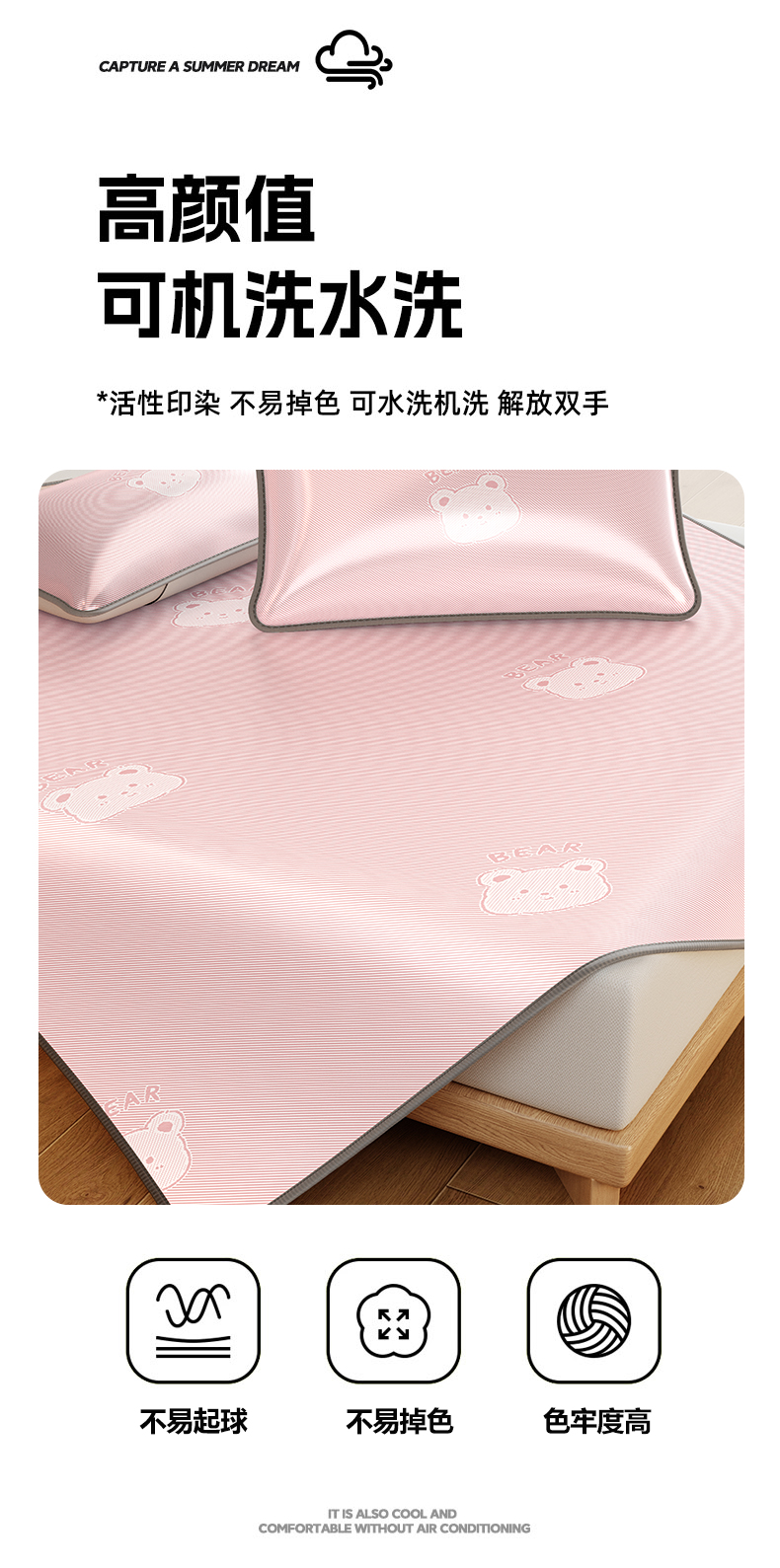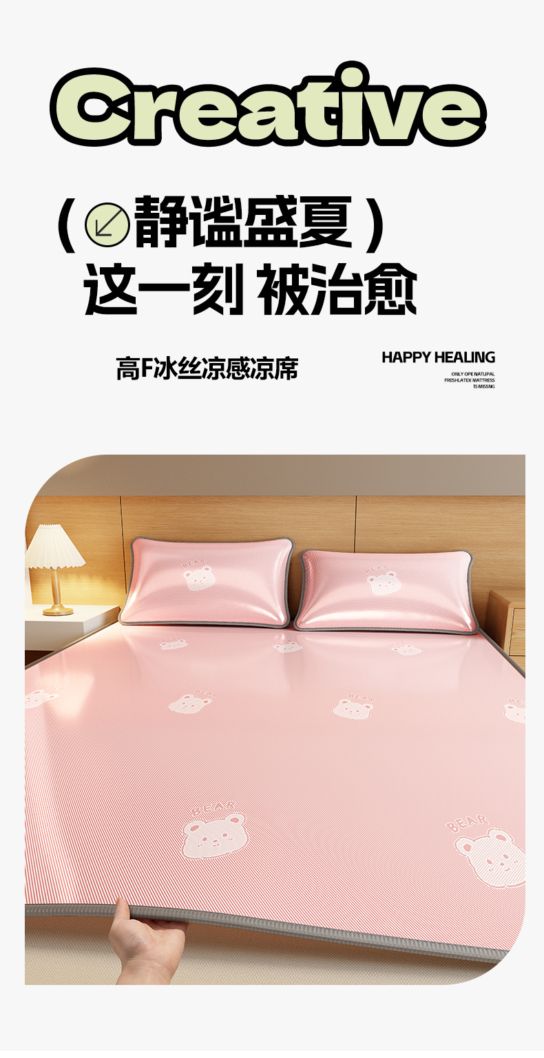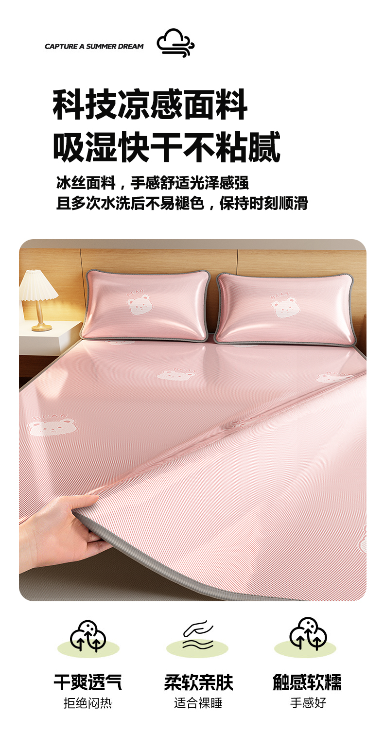 源舍家纺 2026新款国标质检三明治复合糯叽叽冰丝软凉席成人床 冰丝熊-粉