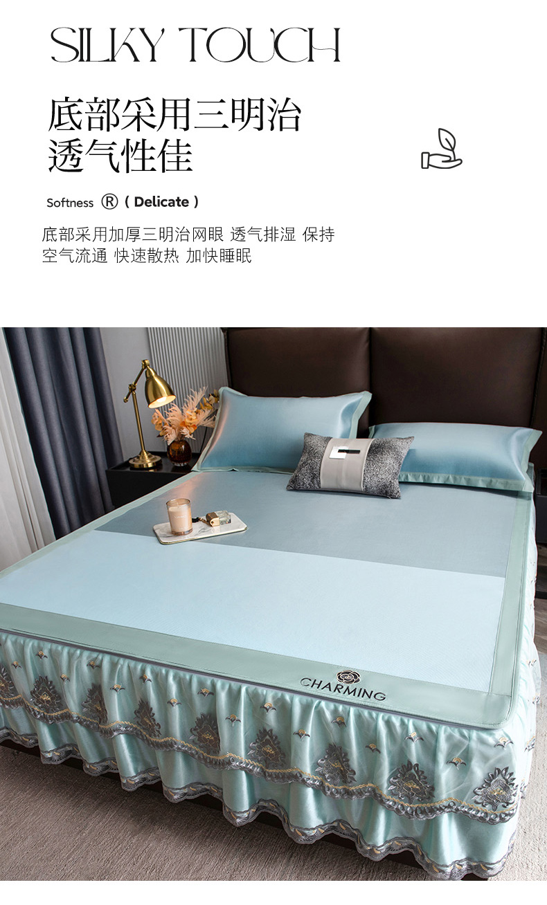 商品名称:(总)印季家纺 2026新款清凉舒适拼色加密冰藤床裙款凉席