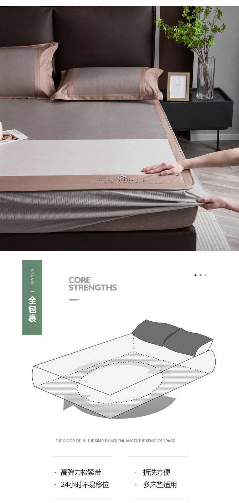 (总)印季家纺 2025新款纯色加密冰藤床裙凉席,粉色,灰色,咖啡,浅紫,水绿,天蓝