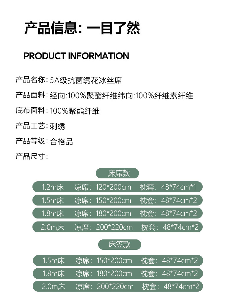 200x220cm单凉席+枕套一对 | ¥90.00 |