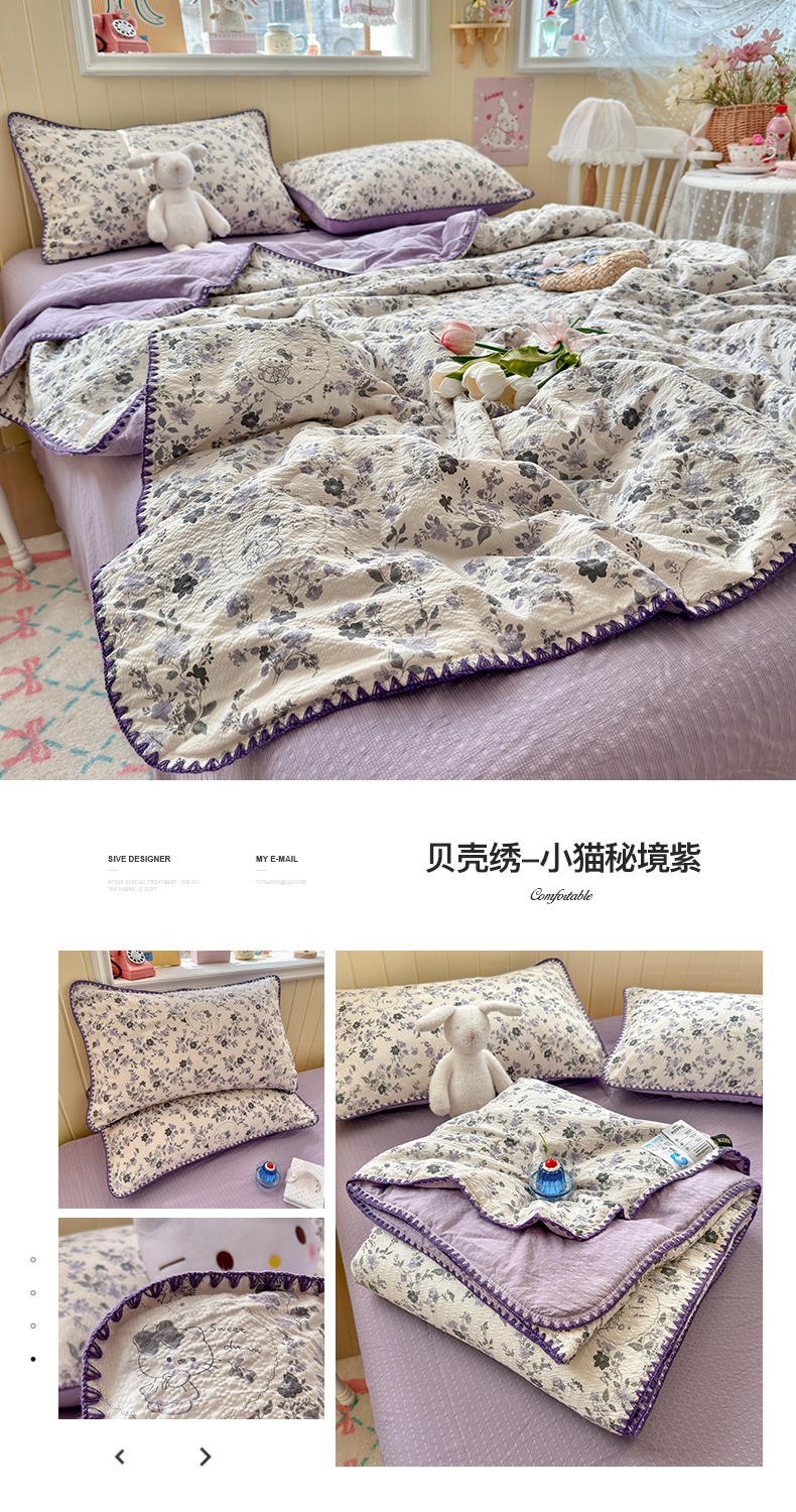 初念 2026新款泡芙纱贝壳绣三角针夏被 提供买家秀 贝壳绣-柔紫碎花屿