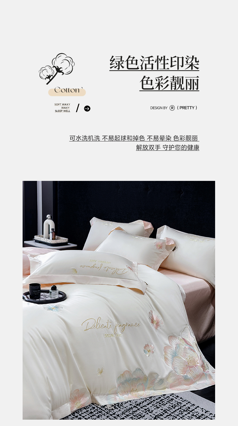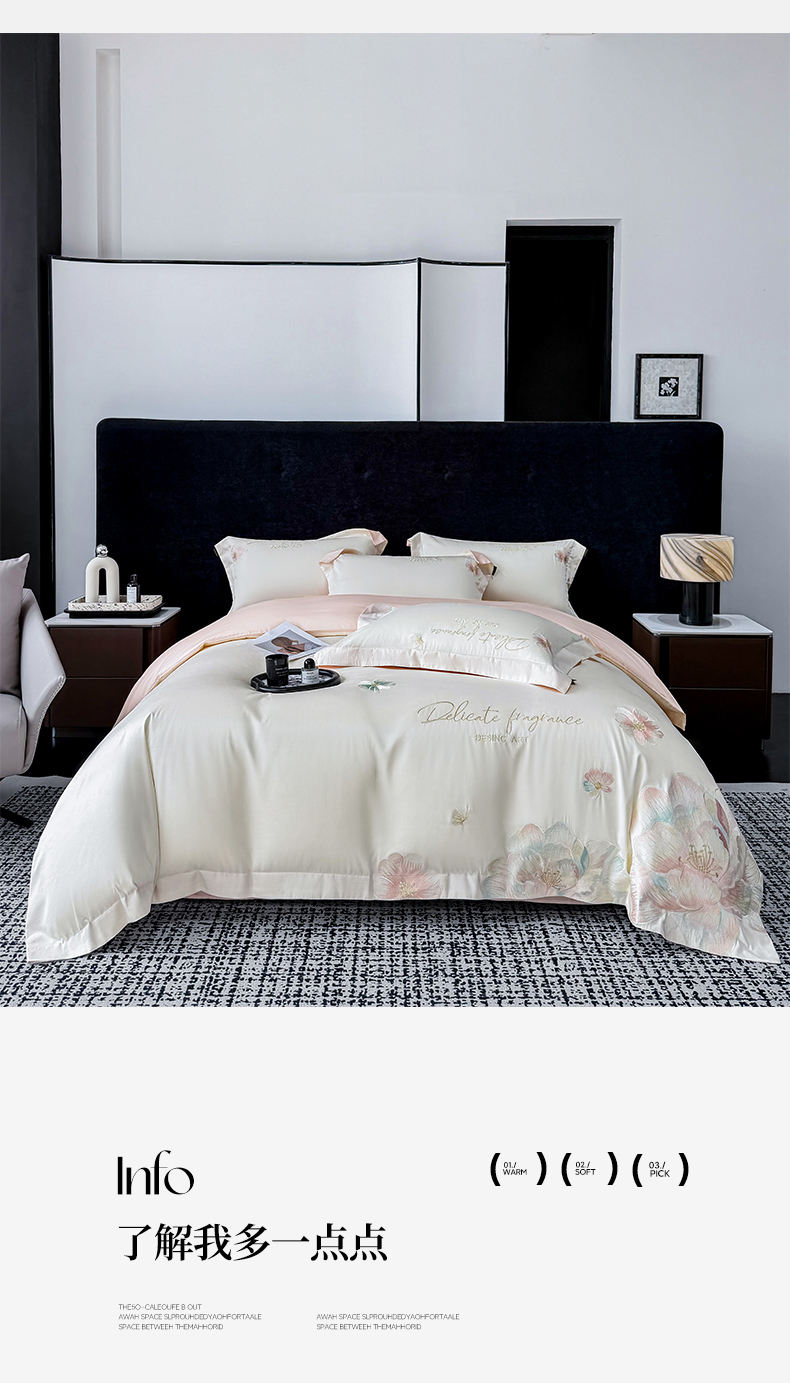 当前位置: 91家纺网 > 商品网购 > 床品套件 > 四件套 > 长绒棉四件套 > (总)欣宜家纺 2026春夏新款A类50支贡缎长绒棉纯棉刺绣轻奢绣花四件套-花枝里