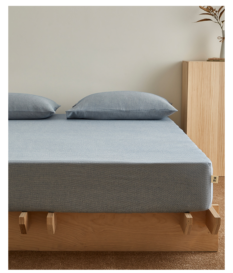 女子家纺 2026新款纯色水洗棉麻床笠单床笠床笠单件 慕斯蓝