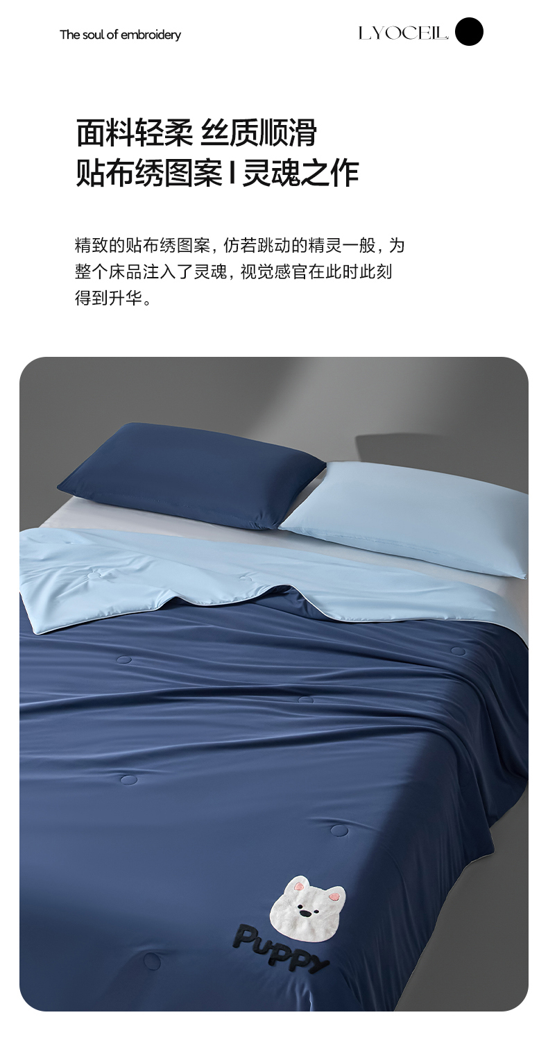 (总)一加一 2026春夏新款云小棉贴布绣花大豆夏凉被空调被夏被四件套,波点小狗,波点熊仔,蜜桃小兔,抹茶熊猫,奶油小鳄鱼