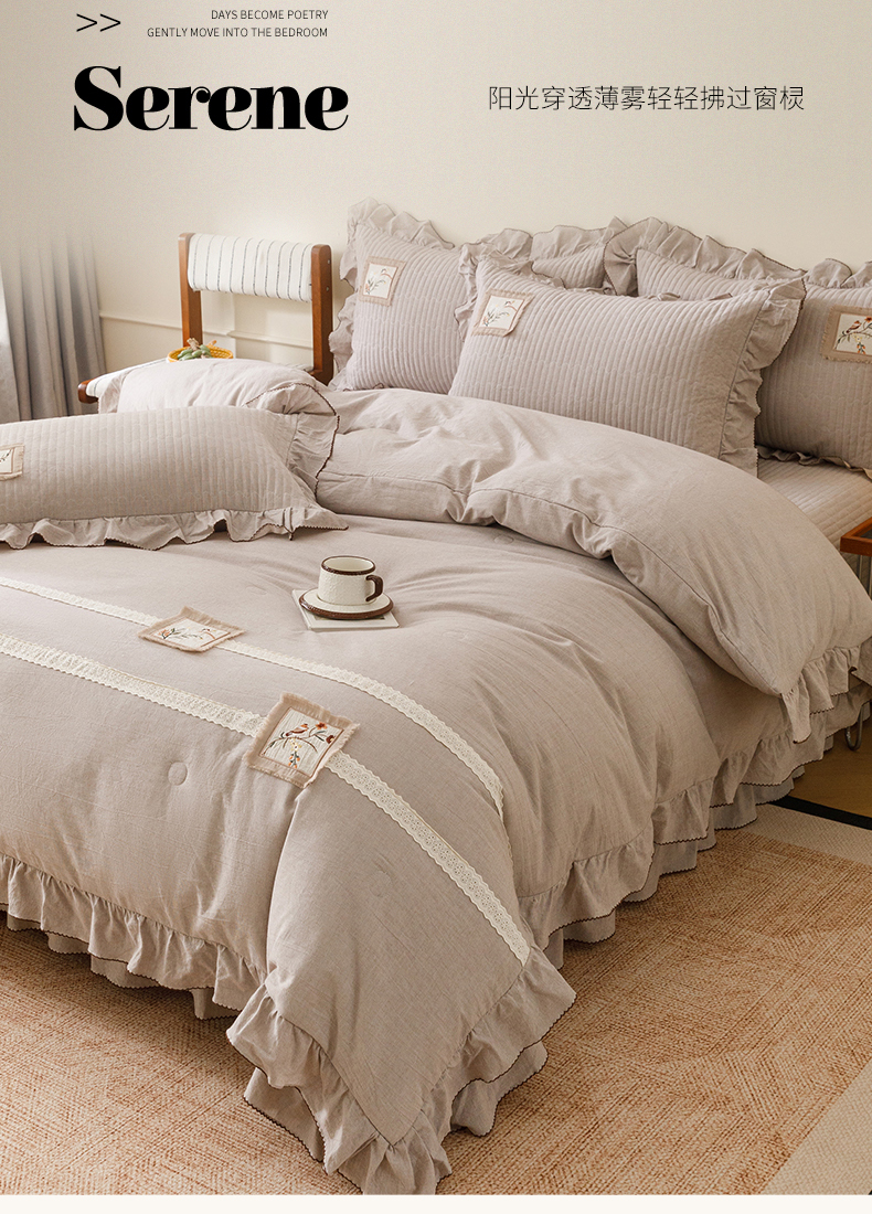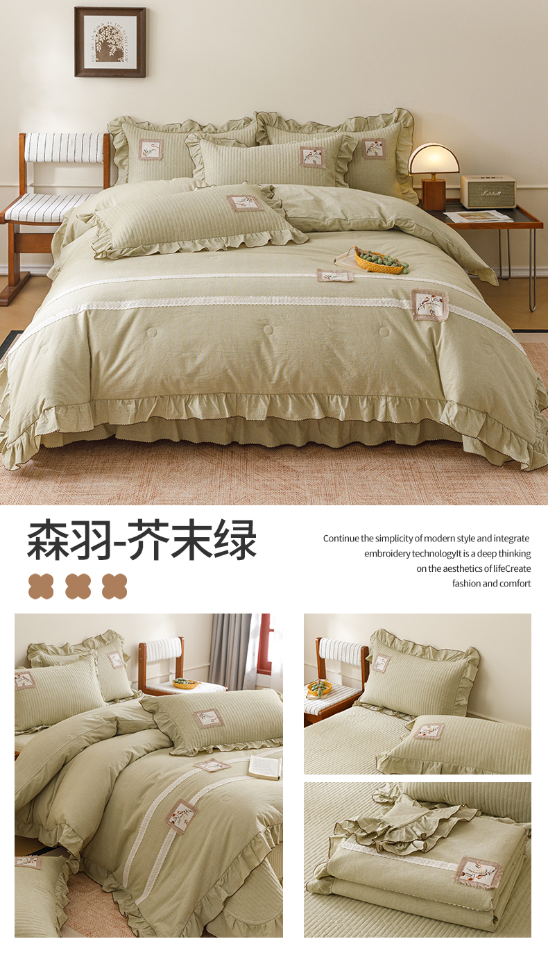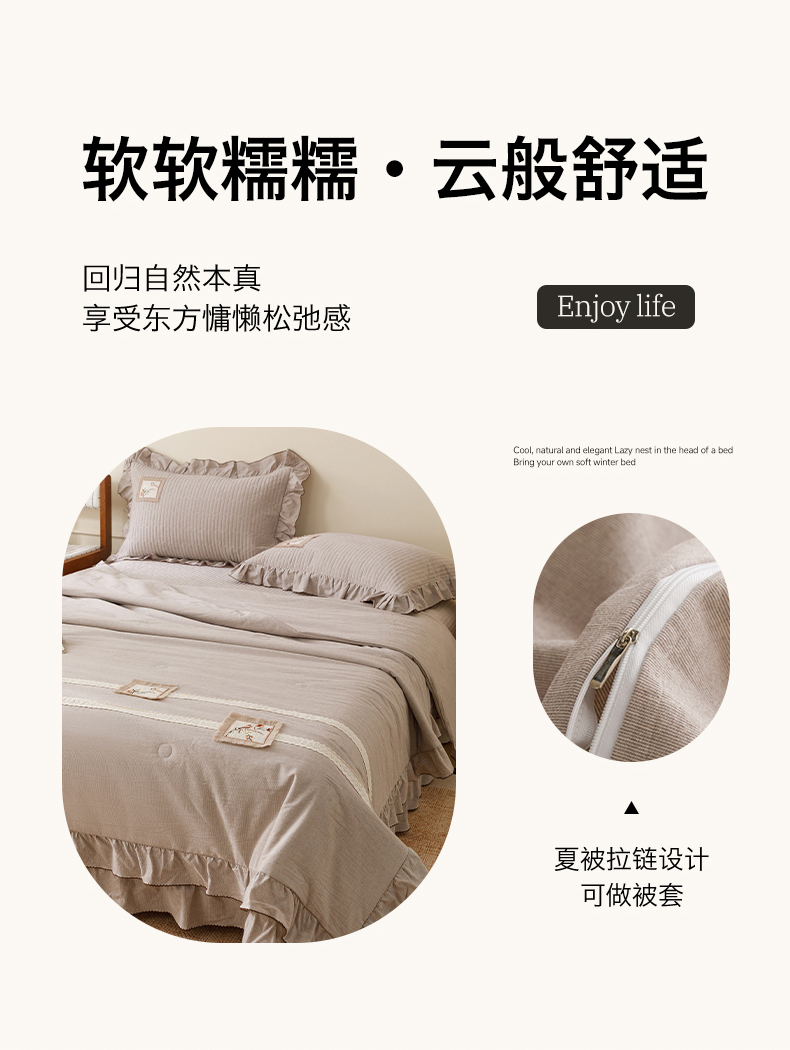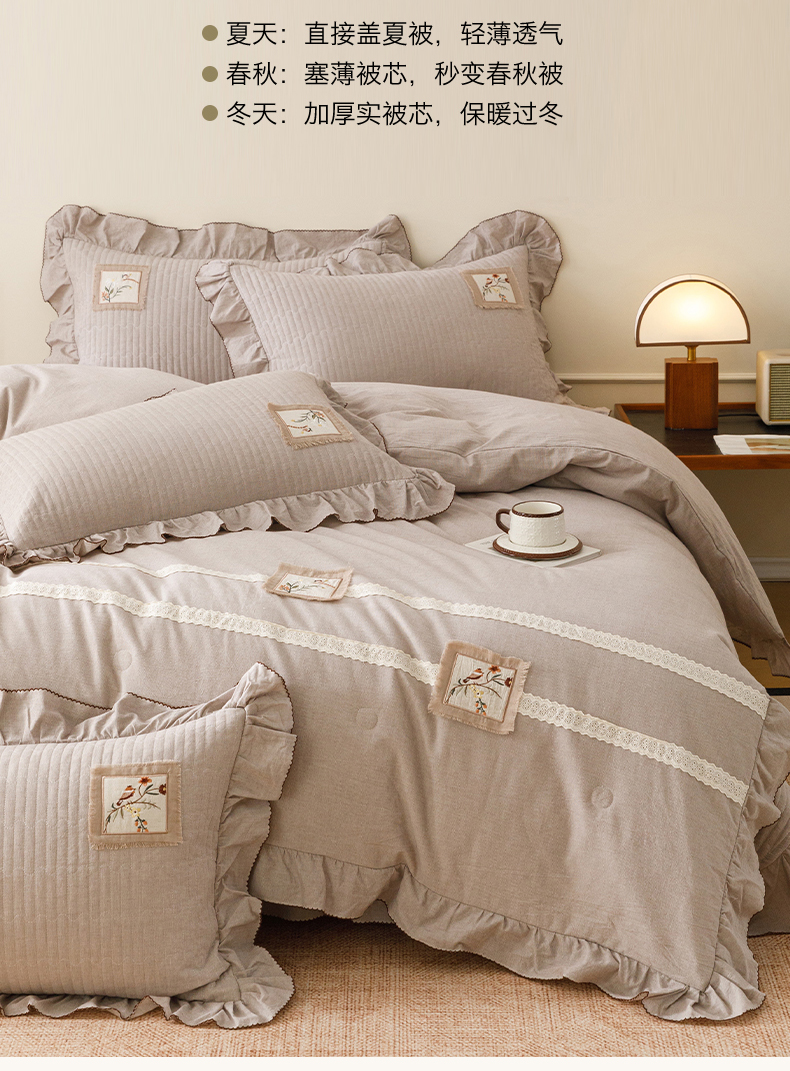 (总)瑞米家居 2026新款棉麻床盖夏被四件-森羽,森羽-灰,森羽-芥末绿,森羽-香芋紫,森羽-原白