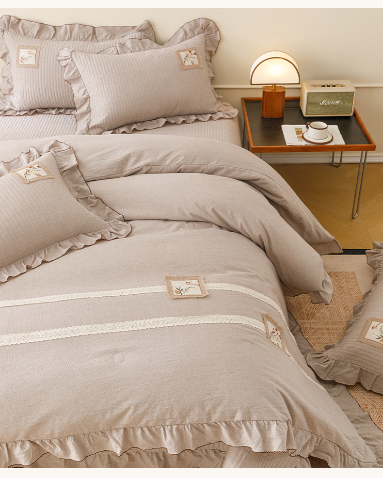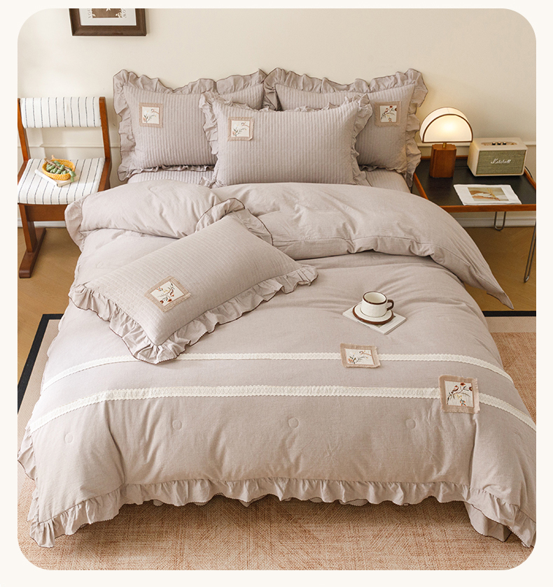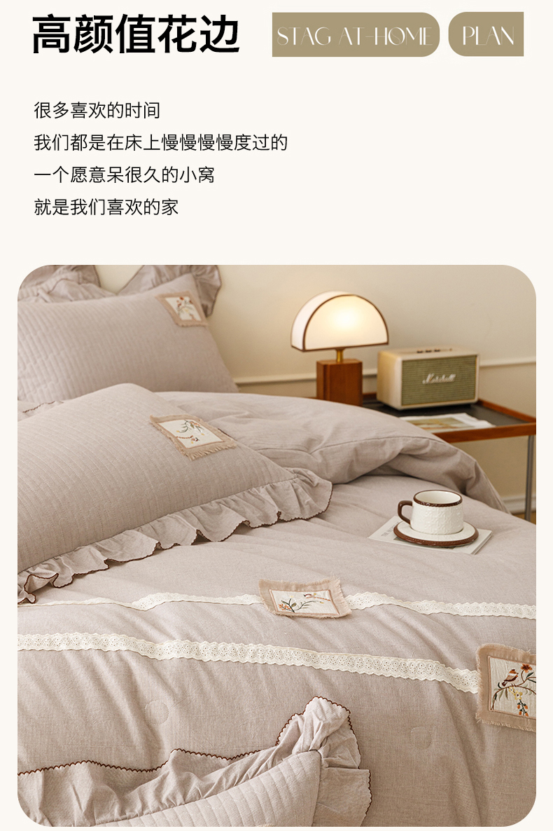 (总)瑞米家居 2026新款A类棉麻提花花边款四件套-翩然乐语,翩然乐语-粉,翩然乐语-红咖,翩然乐语-芥末绿,翩然乐语-深灰
