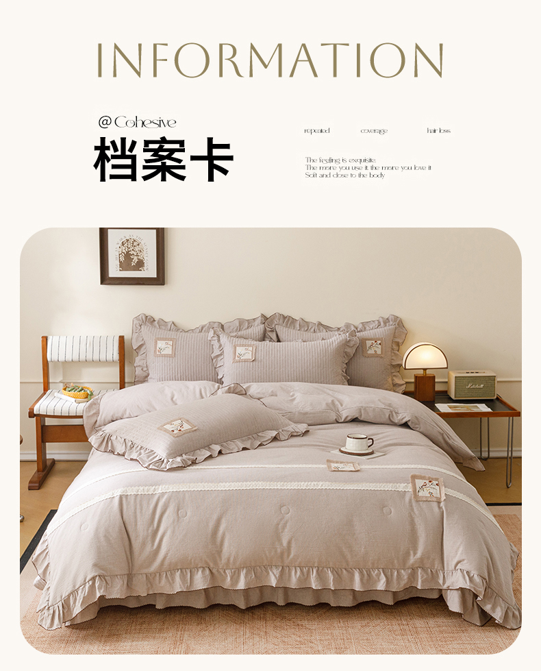 (总)瑞米家居 2025新款A类棉麻提花花边款四件套-蝶恋花,蝶恋花-粉色,蝶恋花-红咖,蝶恋花-芥末绿,蝶恋花-米色,蝶恋花-中灰