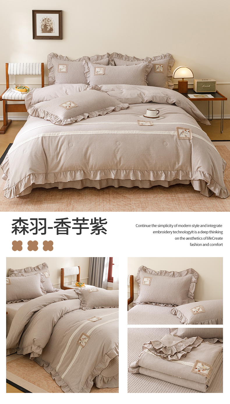 商品名称:瑞米家居 2026新款棉麻床盖夏被四件-森羽 森羽-香芋紫