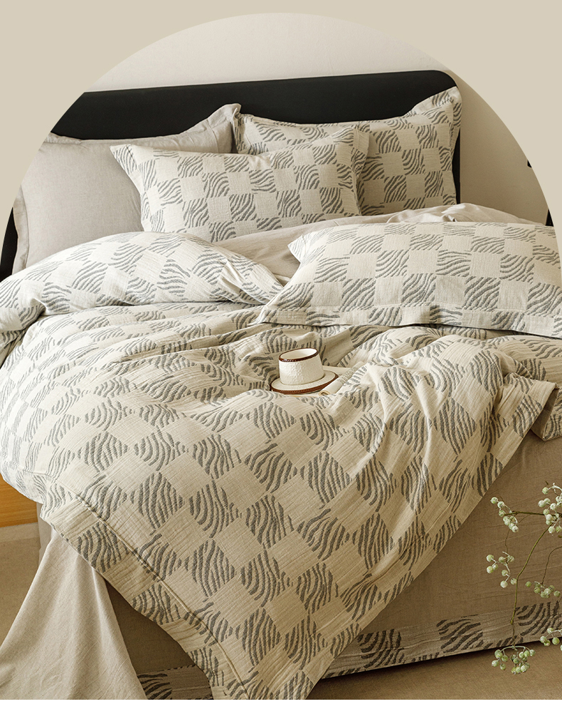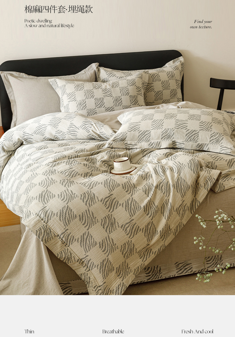 (总)瑞米家居 2026新款棉麻床盖夏被四件-森羽,森羽-灰,森羽-芥末绿,森羽-香芋紫,森羽-原白