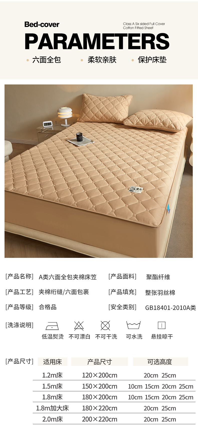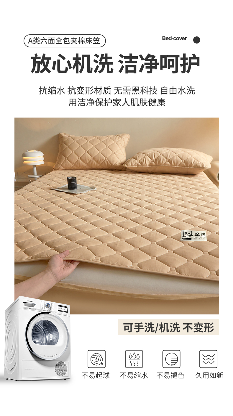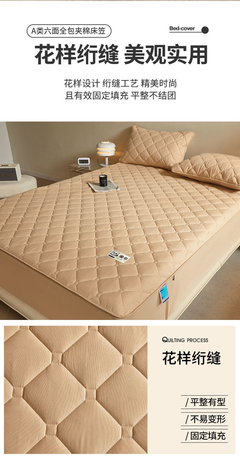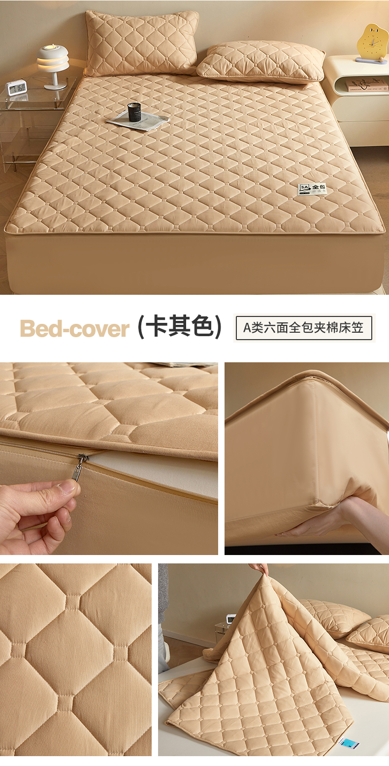 (总)欧妮家纺 2026新款六面全包夹棉床笠-席梦思保护套,六面全包-粉玉,六面全包-卡其色,六面全包-蓝色,六面全包-烟灰,六面全包-珍珠白