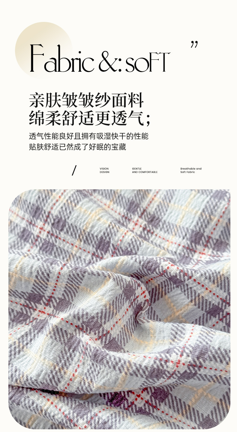 (总)丝芙妮家居 2026新款皱皱棉双层纱泡芙棉四件套,缤纷南瓜,春之约,格纹爱心,花清梦,花枝狗狗,假日小狗,莓果冰淇淋,草莓奶昔,泡芙蝴蝶结,浅川织格,素描花海,晚安甜心,星月点点,组合图仅做展示不可下单