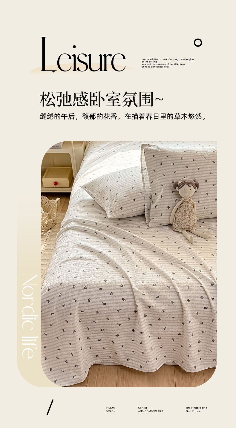 • 91家纺网 家纺一手货源 找家纺 丝芙妮家居 2026春夏新款皱皱棉双层纱泡芙棉床单 床单单件 知锦