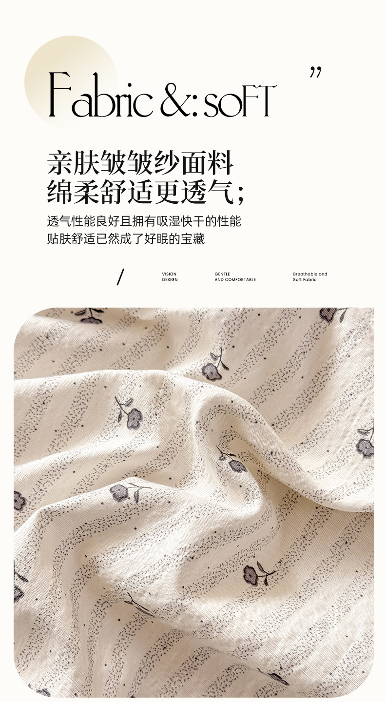 (总)丝芙妮家居 2026春夏新款皱皱棉双层纱泡芙棉四件套,晨光-黄,花簇,怀旧-兰,牧歌,顽宠,雅蔓,樱桃,晨光-灰,云蝶-粉,云蝶-兰,知锦