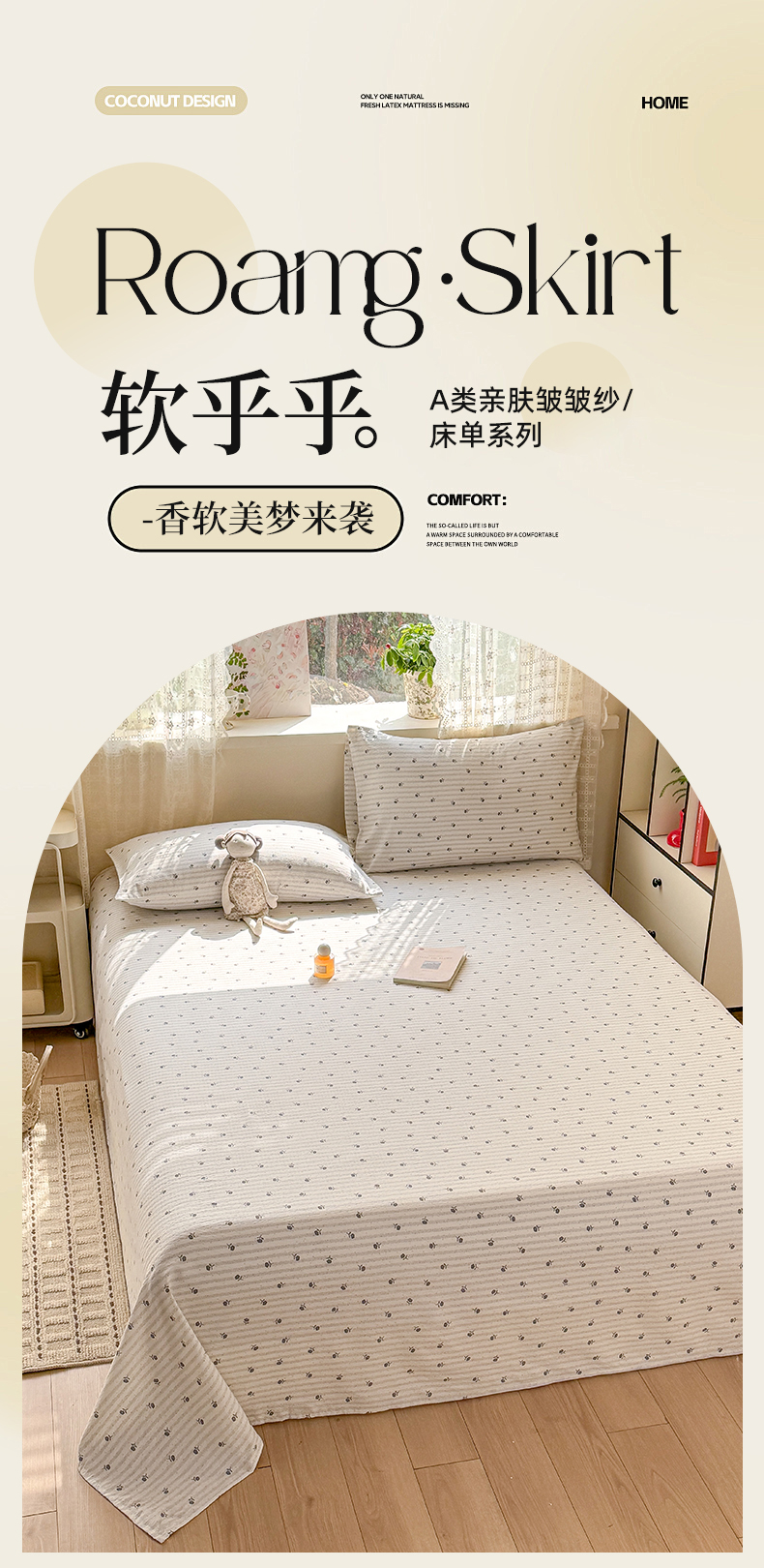 (总)丝芙妮家居 2026新款皱皱棉双层纱泡芙棉床单单床单,缤纷南瓜,草莓奶昔,春之约,格纹爱心,花清梦,花枝狗狗,假日小狗,莓果冰淇淋,泡芙蝴蝶结,浅川织格,素描花海,晚安甜心,星月点点