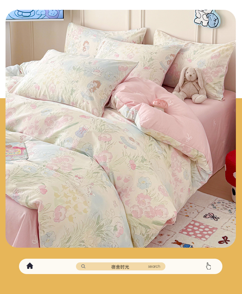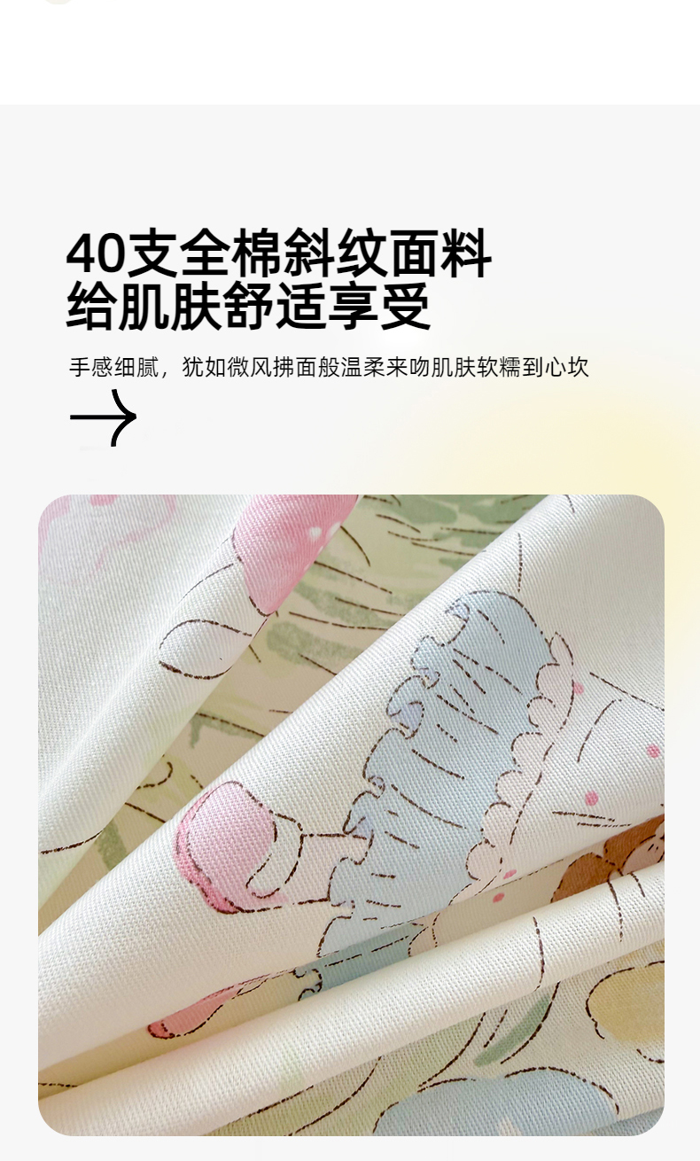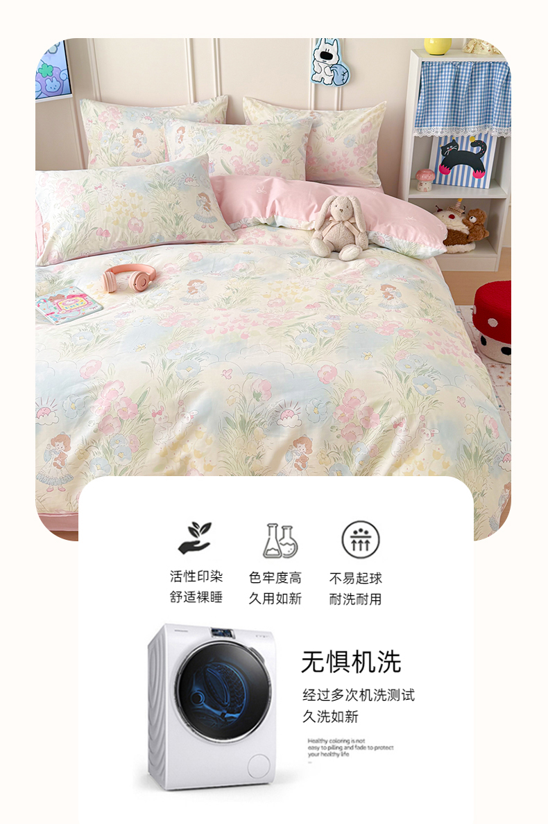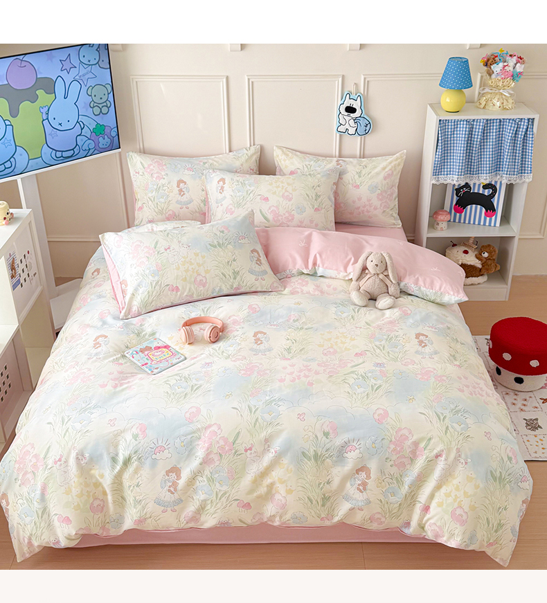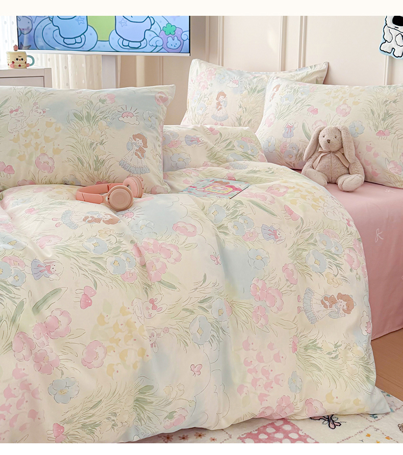 当前位置: 91家纺网 > 商品网购 > 床品套件 > 四件套 > 全棉普通四件套 > 女子家纺 2026新款全棉纯棉12868卡通印花四件套 花海童话