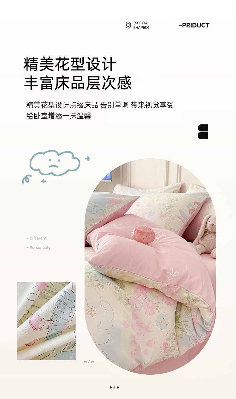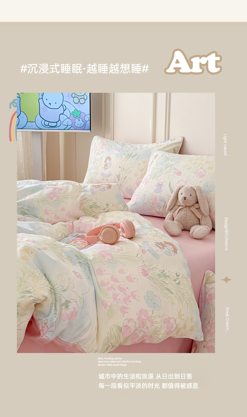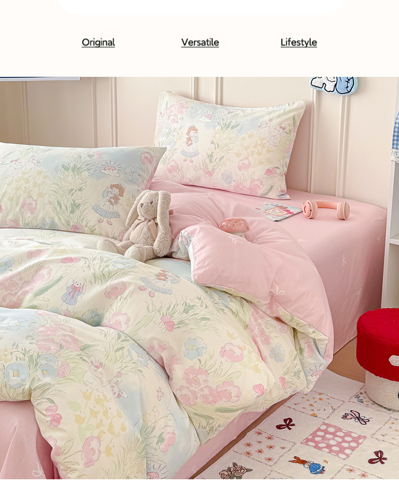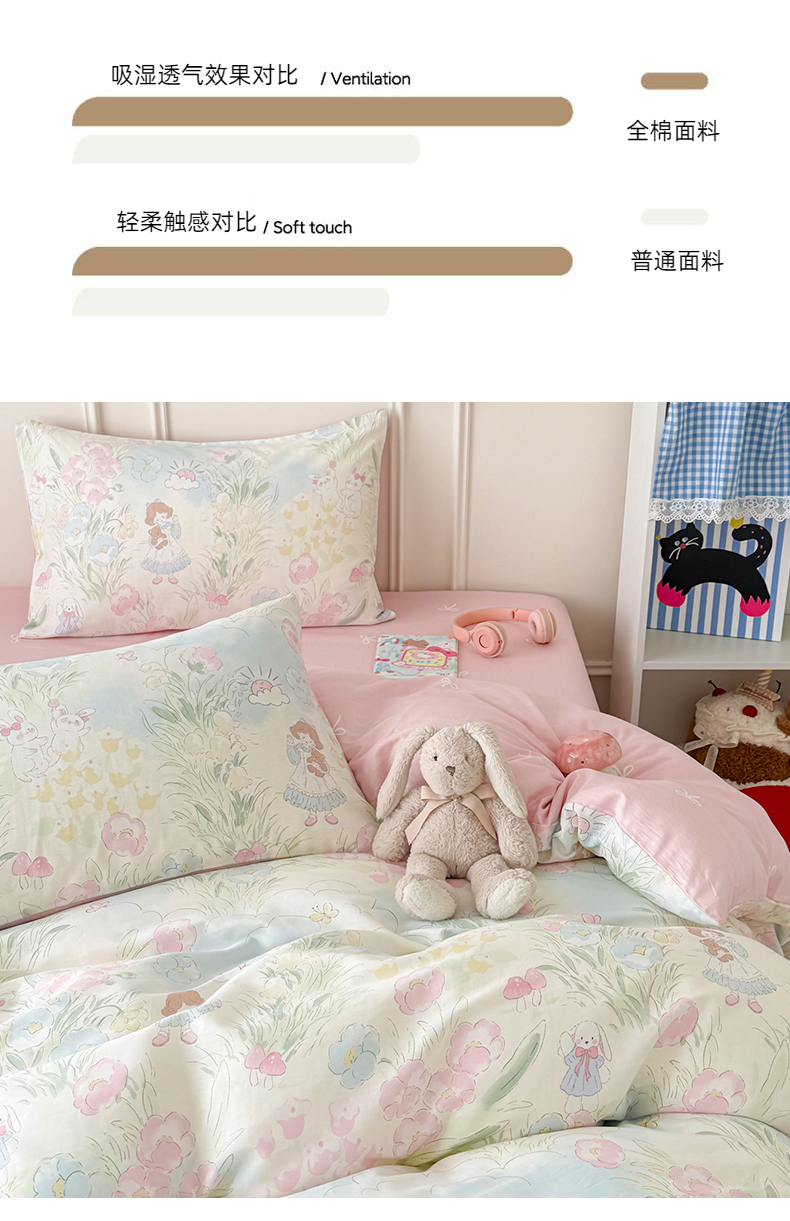 当前位置: 91家纺网 > 商品网购 > 床品套件 > 四件套 > 全棉普通四件套 > 女子家纺 2026新款全棉纯棉12868卡通印花四件套 花海童话