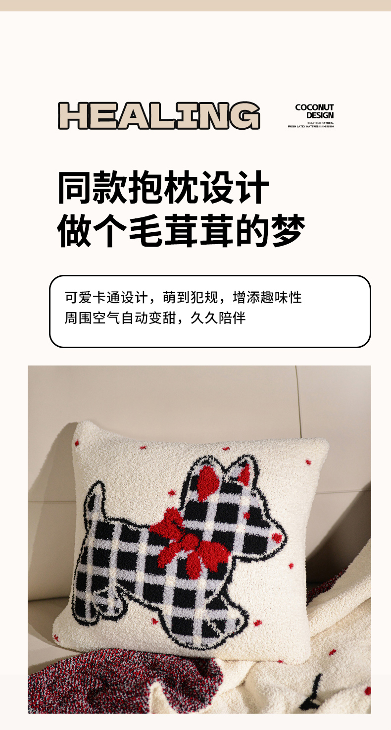 商品名称:栩裕纺织 2026新款艺术家居超柔半边绒A类针织毯披肩毯多功能盖毯礼物礼品终端控价 云朵朵(咖)抱枕套