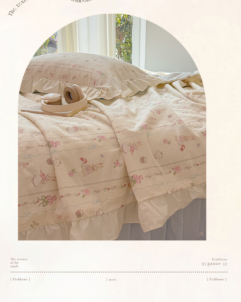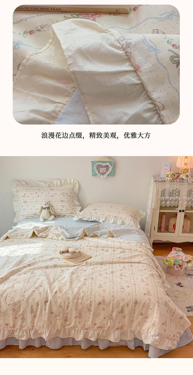 女子家纺 2026新款全棉花边夏被全棉床盖夏被四件套 幸福小兔
