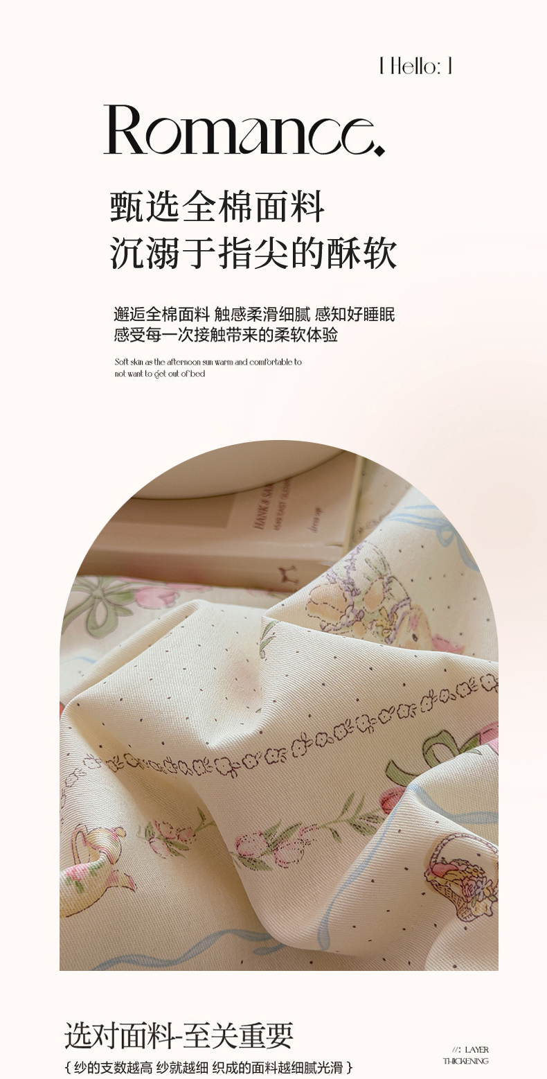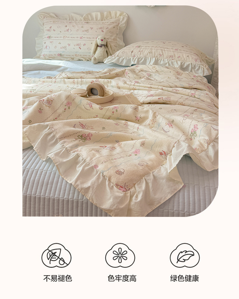• 91家纺网 家纺一手货源 找家纺 女子家纺 2026新款全棉花边夏被全棉床盖夏被四件套 幸福小兔