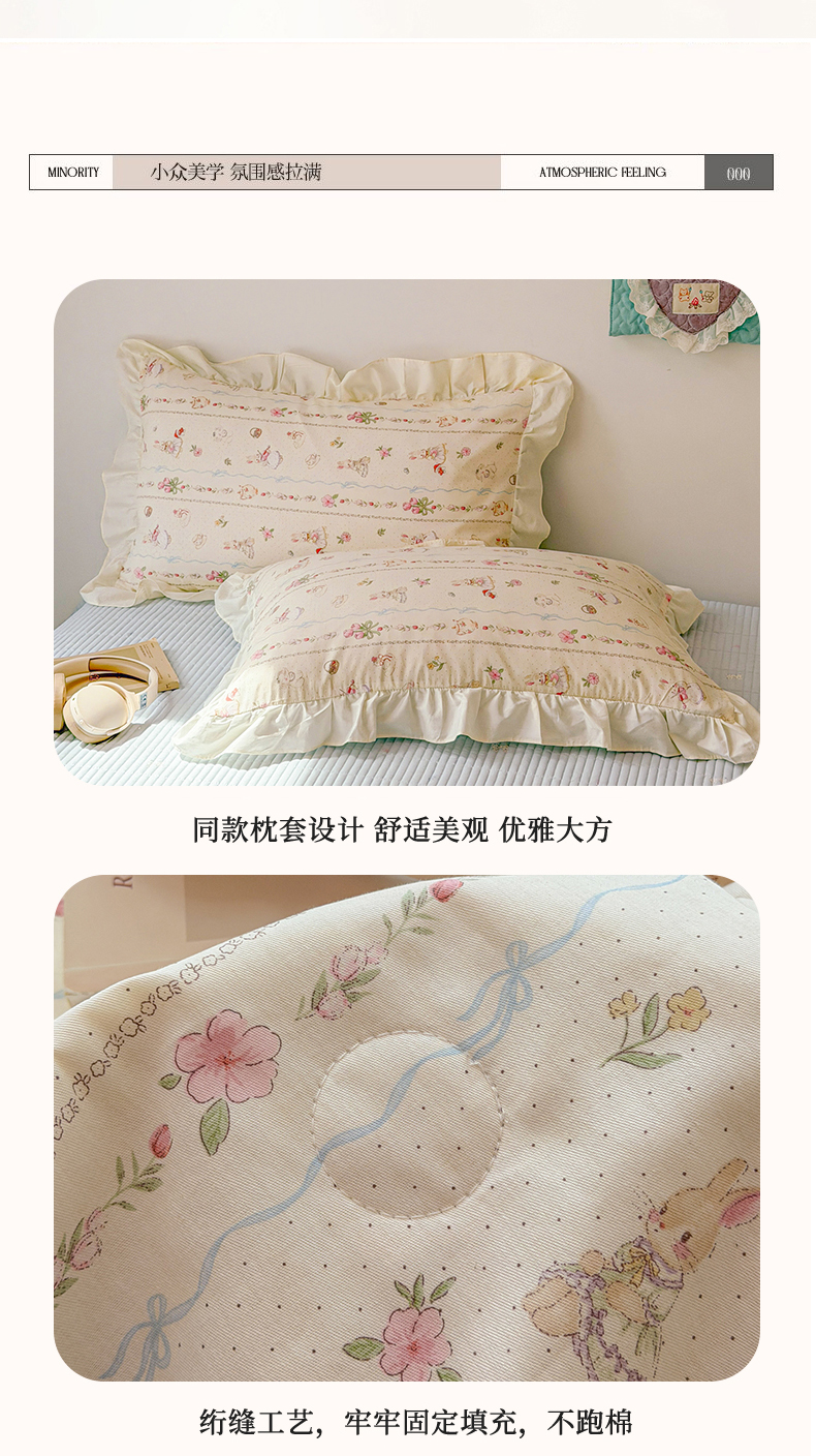 当前位置: 91家纺网 > 商品网购 > 被子 > 夏被 > 女子家纺 2026新款全棉花边夏被全棉床盖夏被四件套 幸福小兔