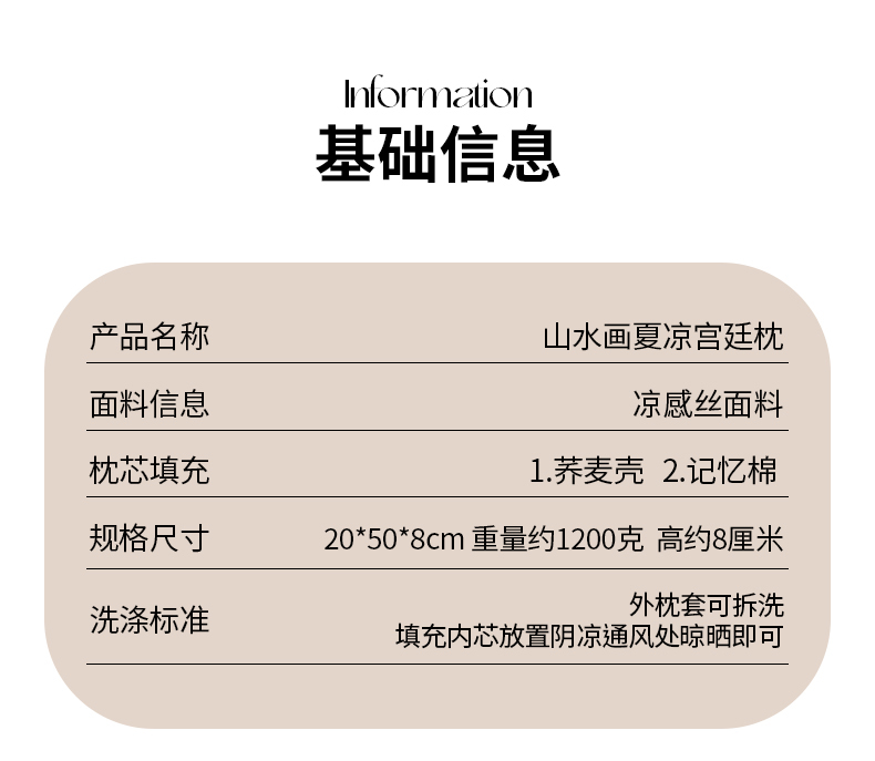 商品名称:(总)仁宇枕业 2026新款山水画夏凉宫廷枕头荞麦枕头枕芯