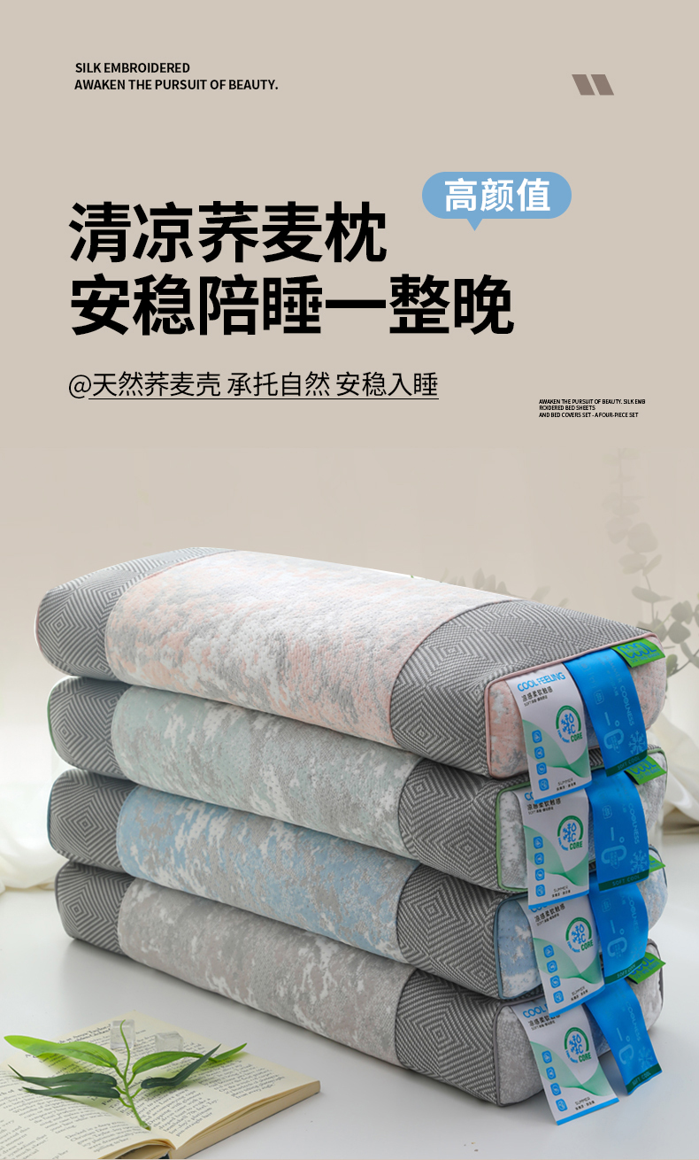 (总)仁宇枕业 2026新款夏季清凉颈氧三角护颈护腰花草荞麦枕头枕芯,清凉颈氧三角荞麦枕-粉色,清凉颈氧三角荞麦枕-灰色,清凉颈氧三角荞麦枕-蓝色,清凉颈氧三角荞麦枕-绿色,组合图仅供展示-不可下单