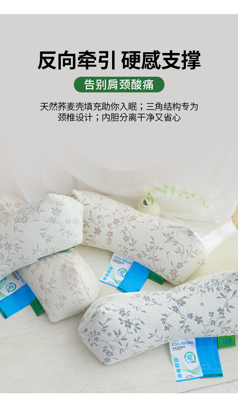 (总)仁宇枕业 2026新款夏季清凉颈氧三角护颈护腰花草荞麦枕头枕芯,清凉颈氧三角荞麦枕-粉色,清凉颈氧三角荞麦枕-灰色,清凉颈氧三角荞麦枕-蓝色,清凉颈氧三角荞麦枕-绿色,组合图仅供展示-不可下单