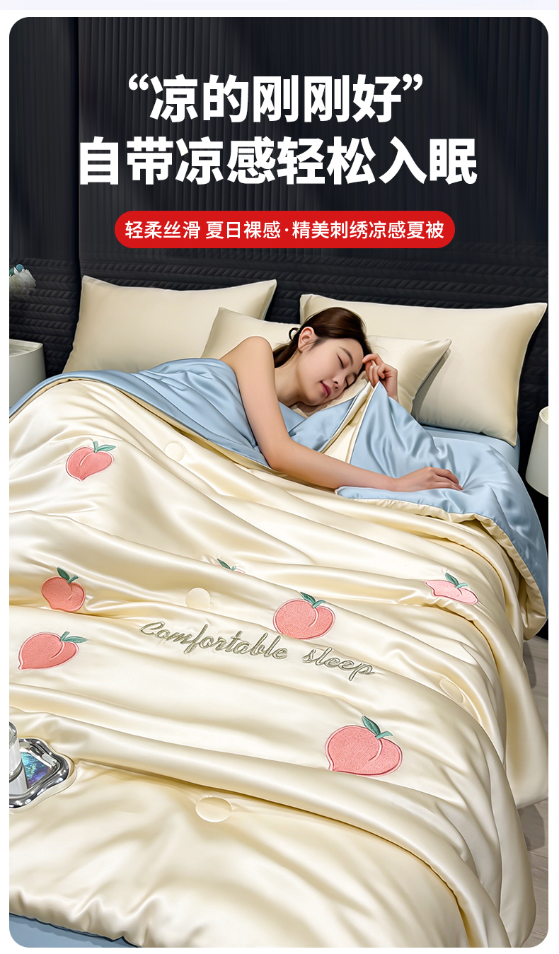 当前位置: 91家纺网 > 商品网购 > 被子 > 夏被 > 爱彼家纺 2026夏季新款水洗冰丝轻奢刺绣凉感夏被夏凉被空调被 桃子-奶白蓝