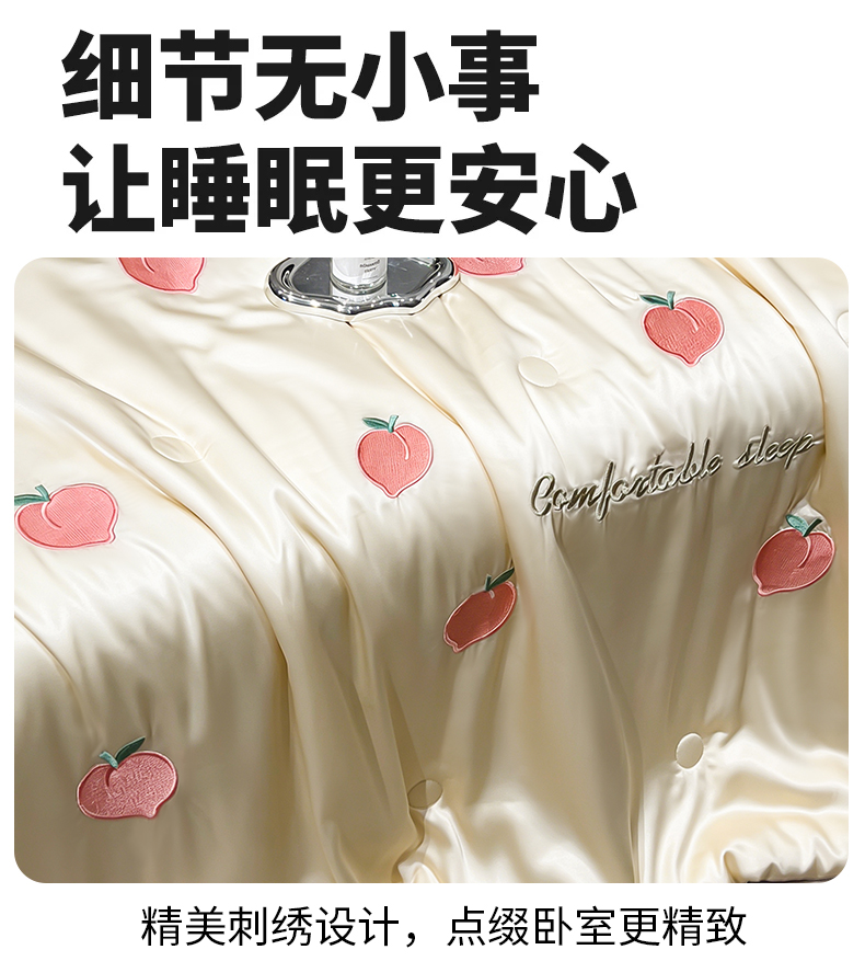 爱彼家纺 2026夏季新款水洗冰丝轻奢刺绣凉感夏被夏凉被空调被 桃子-奶白蓝
