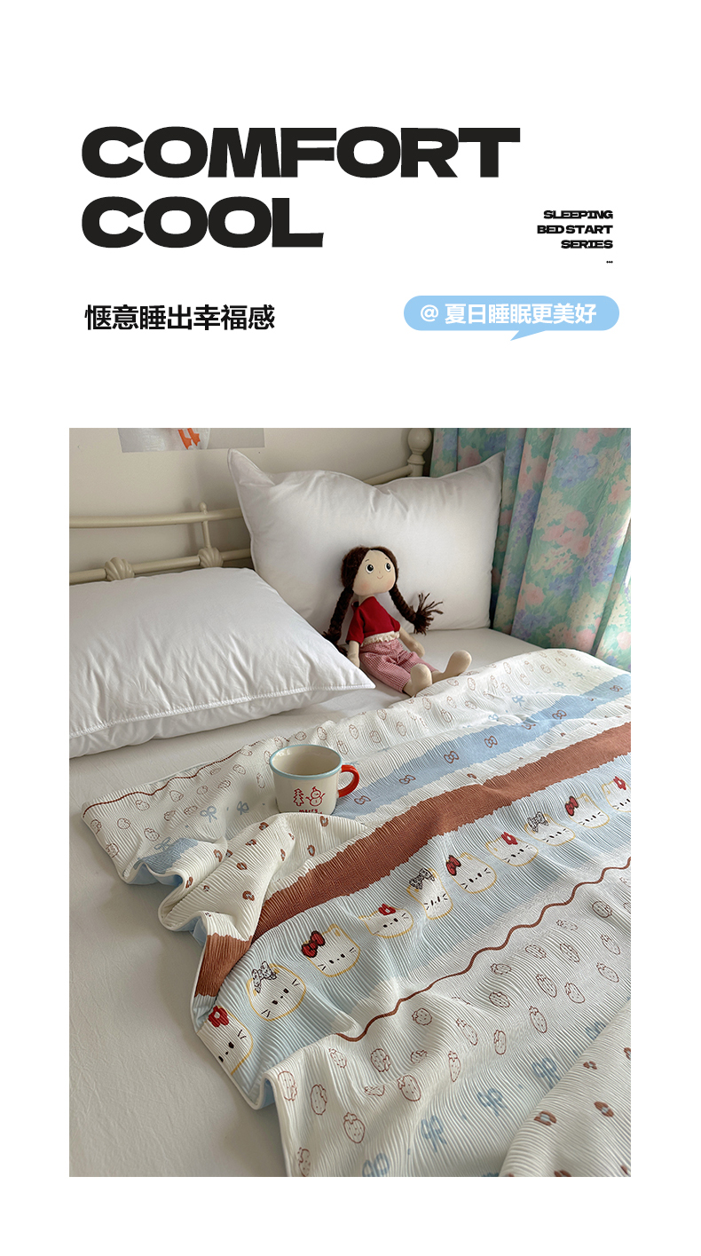 商品名称:顾里家纺 2026新款韩系费尔岛风泡泡凉感夏被夏凉被空调被 粉爱心猫猫
